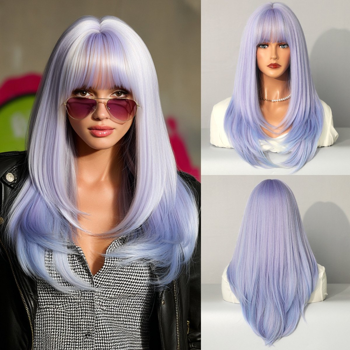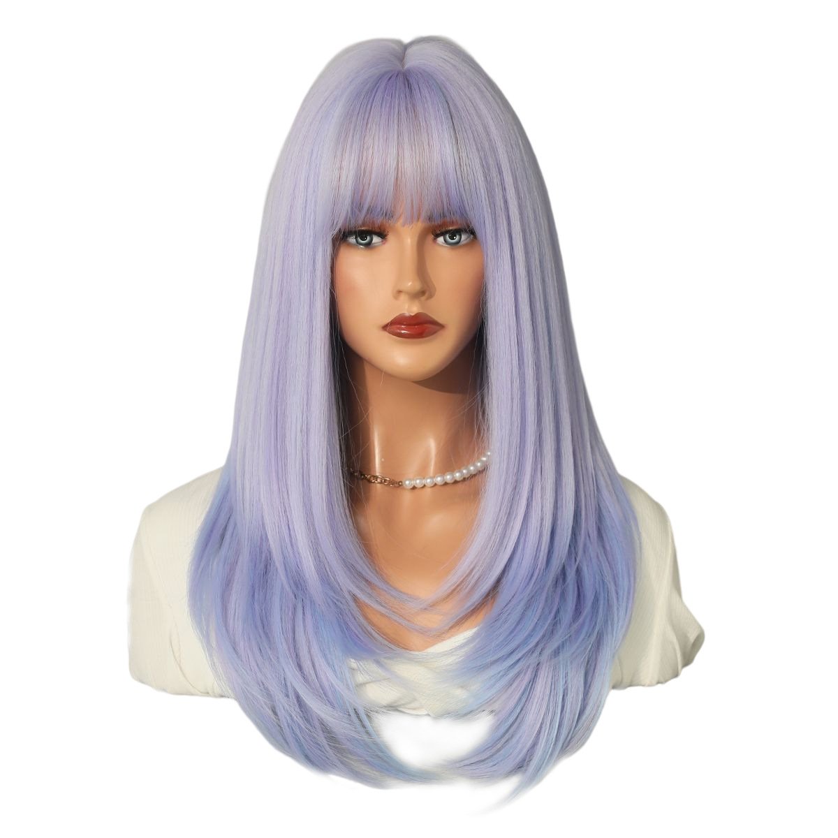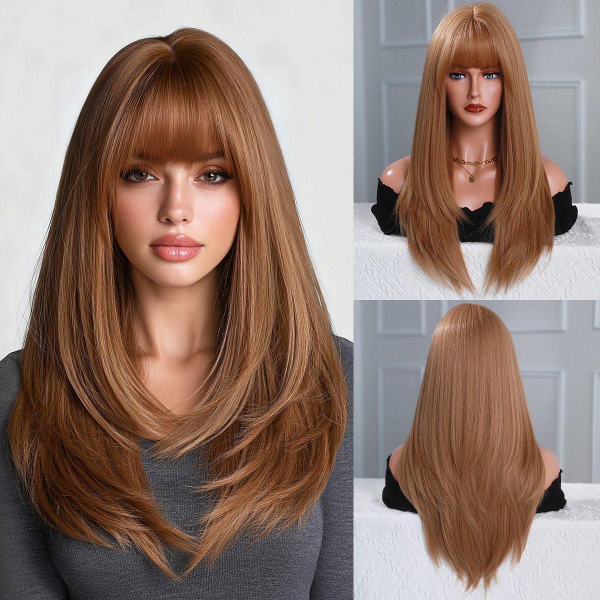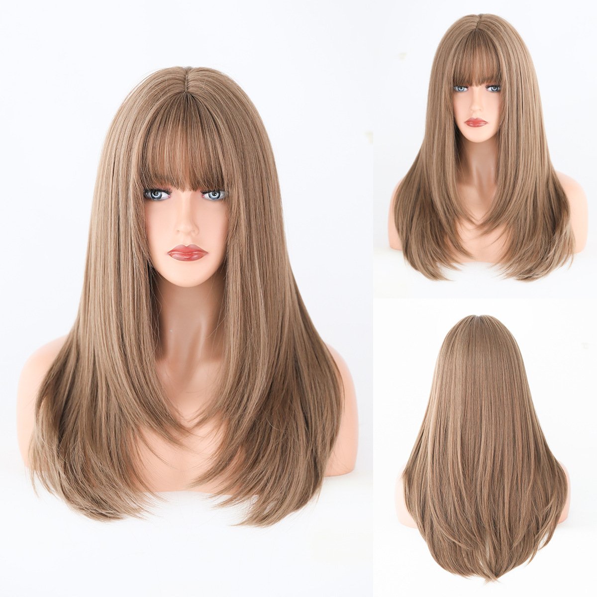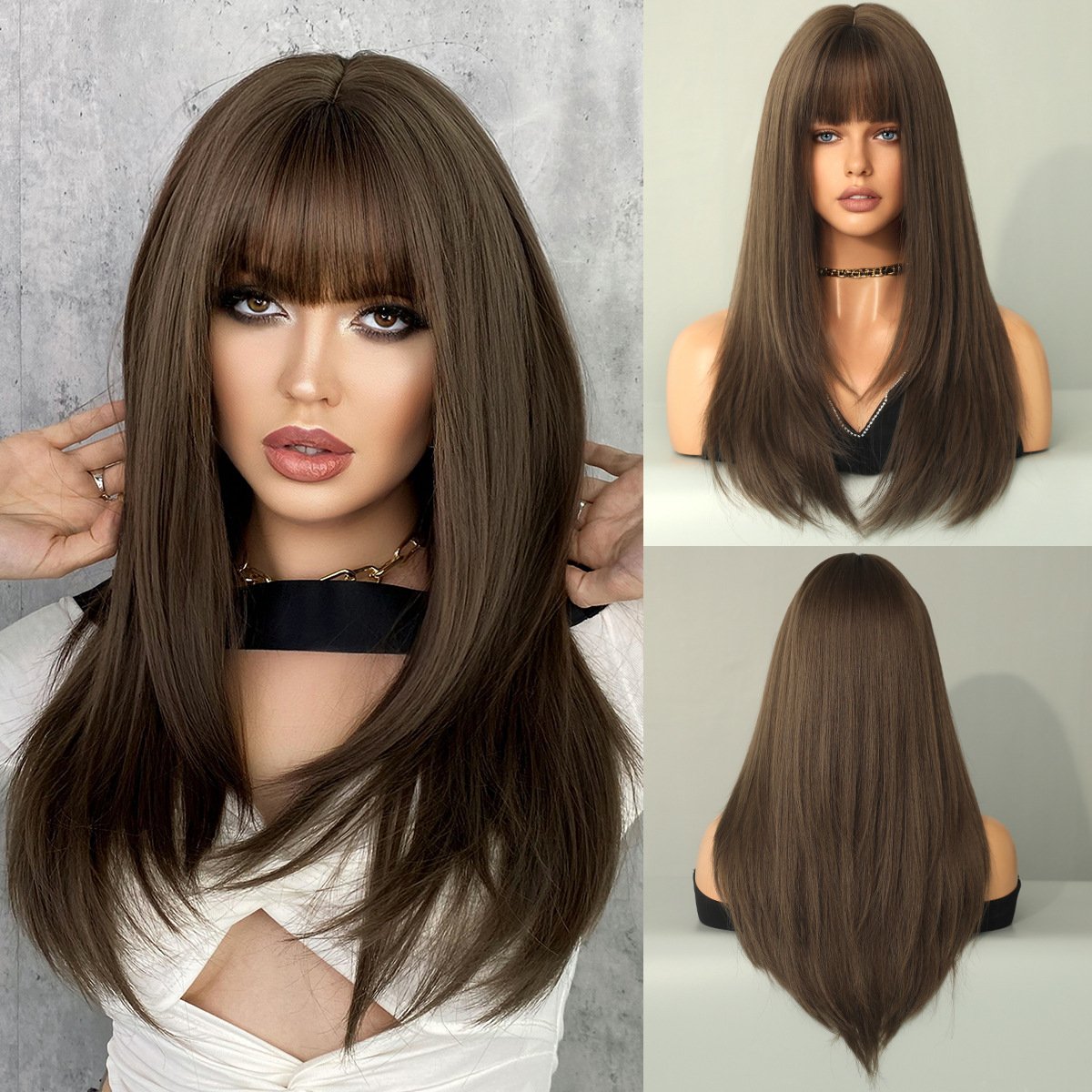 High Level Wig Women’s Air Bangs Straight Hair Full Head Cover Brown Daily Fluffy High Quality Chemical Fiber Wig