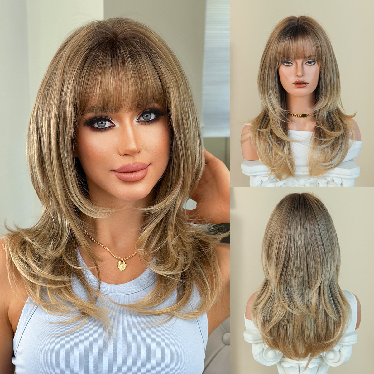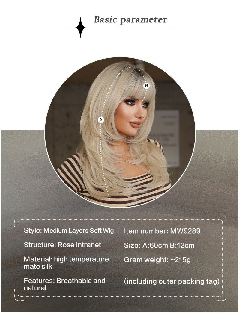 Be the first to review “High Quality 24in Platinum Wig Women’s European and American Hierarchical Textured Long Hair Natural Heat Resistant Fluffy Wig with Qi Bangs” Cancel reply