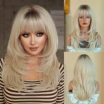 Platinum Blonde Wavy Wig with Air Bangs