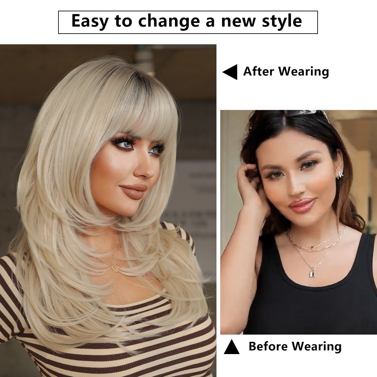 Model: Platinum Blonde Synthetic Layered Hair Wigs