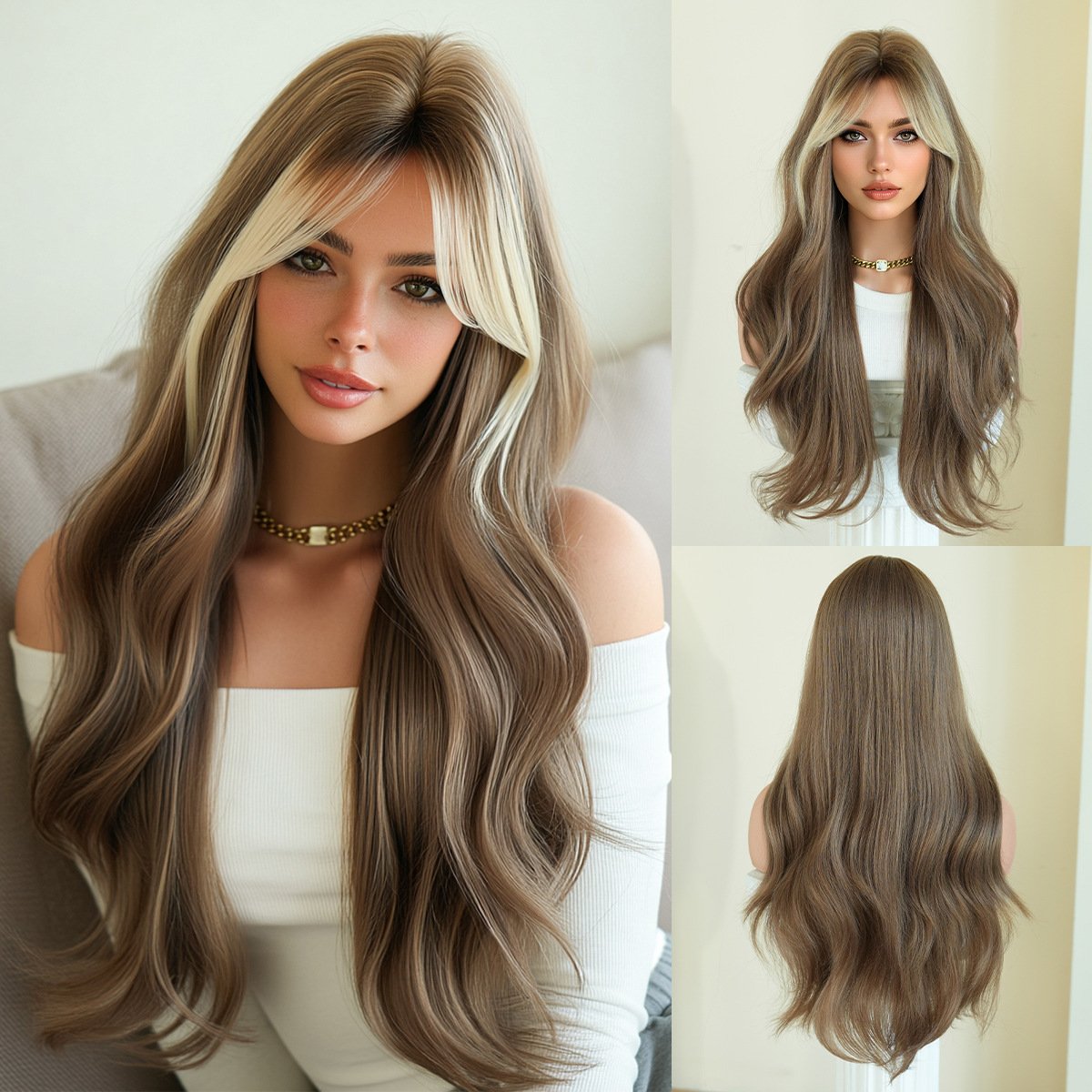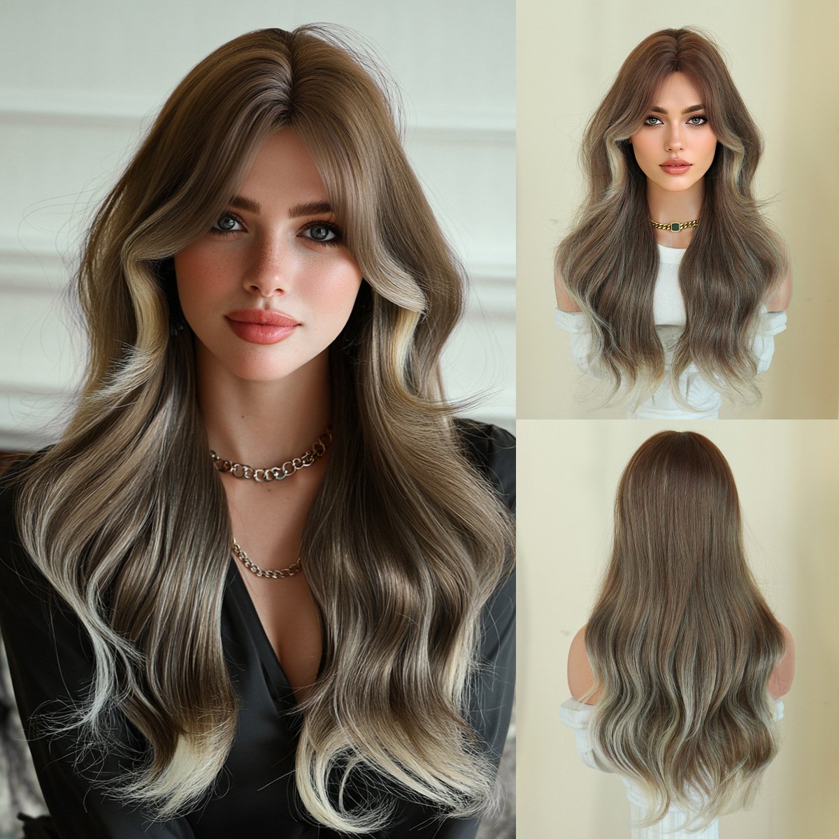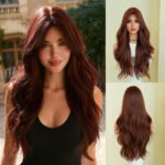 Model: 26in Long Wavy Wig with Curtain Bangs