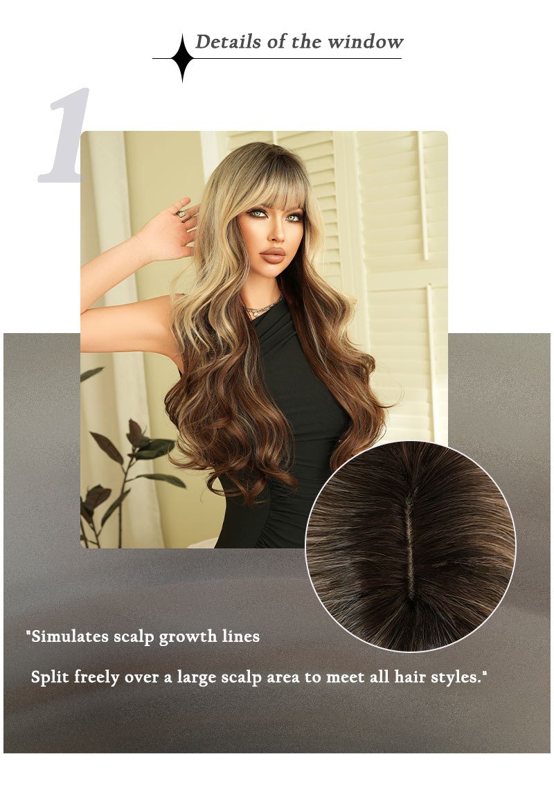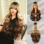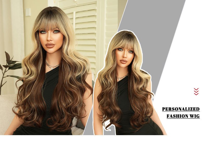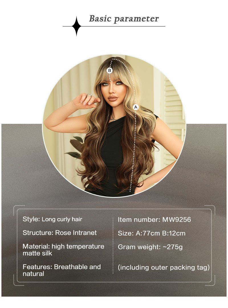 High quality 30in gradient color wave super long curly hair neat bangs fluffy chemical fiber synthetic heat resistant fiber wig