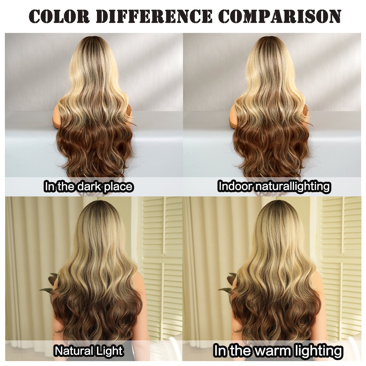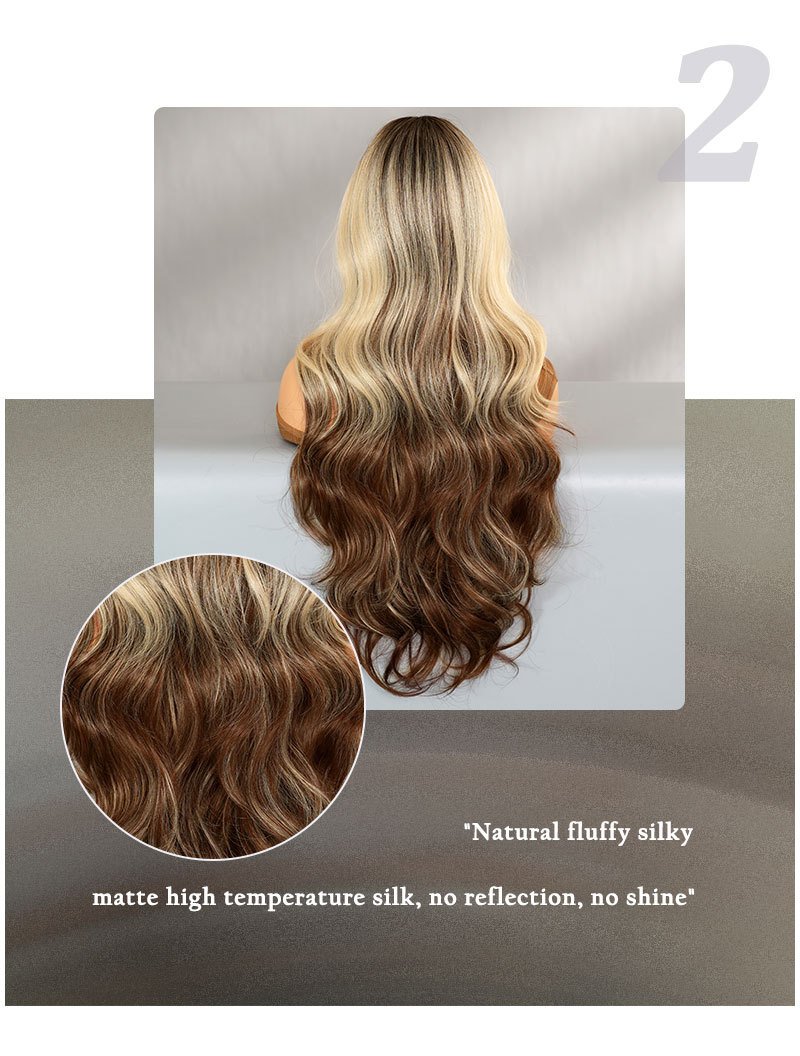Glamorous Ombre Black to Blonde Water Wave Curly Wig – Full Synthetic Headpiece