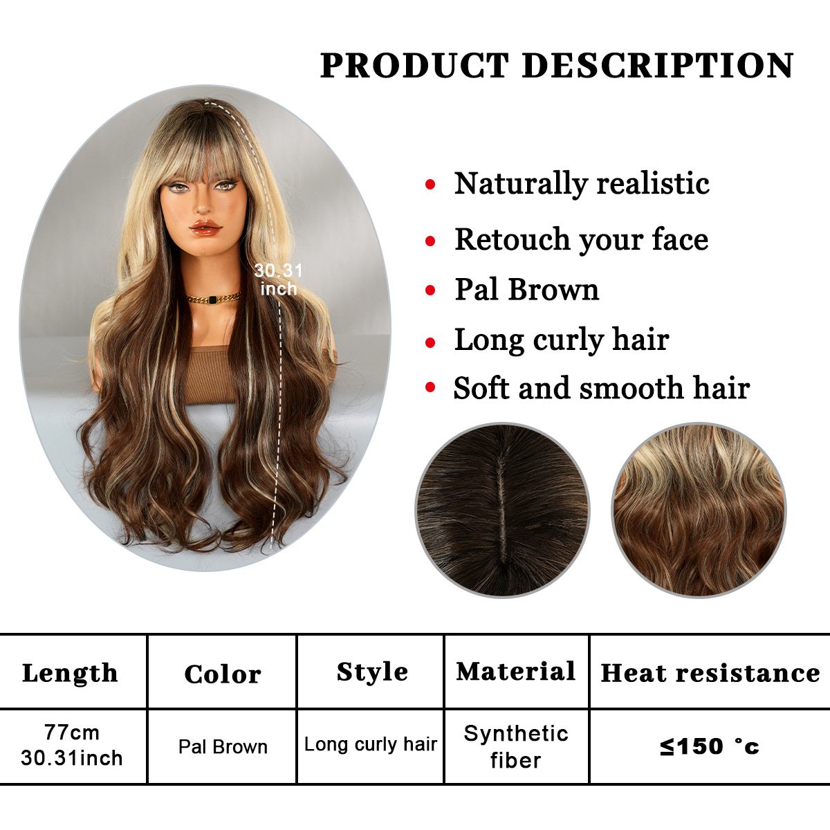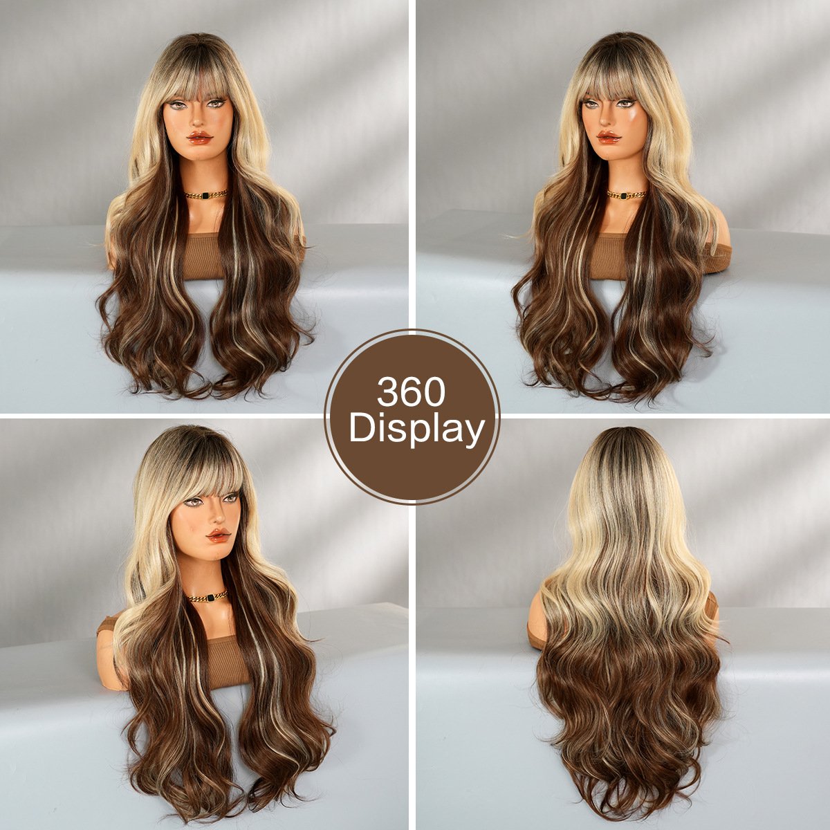 High-Quality Honey Brown Wig for Women: Big Wave Long Curls with a Full Bangs, Fluffy All-Over Natural-Looking Synthetic Hairpiece