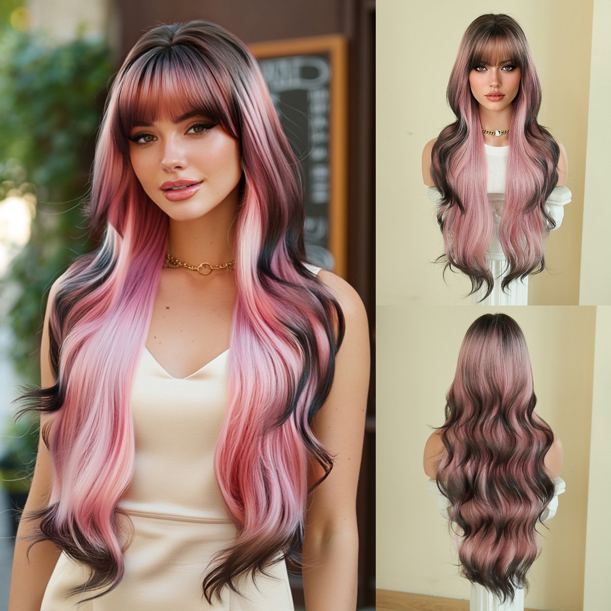 Model: Extra-Long Colorful Wavy Wig with Bangs for Women