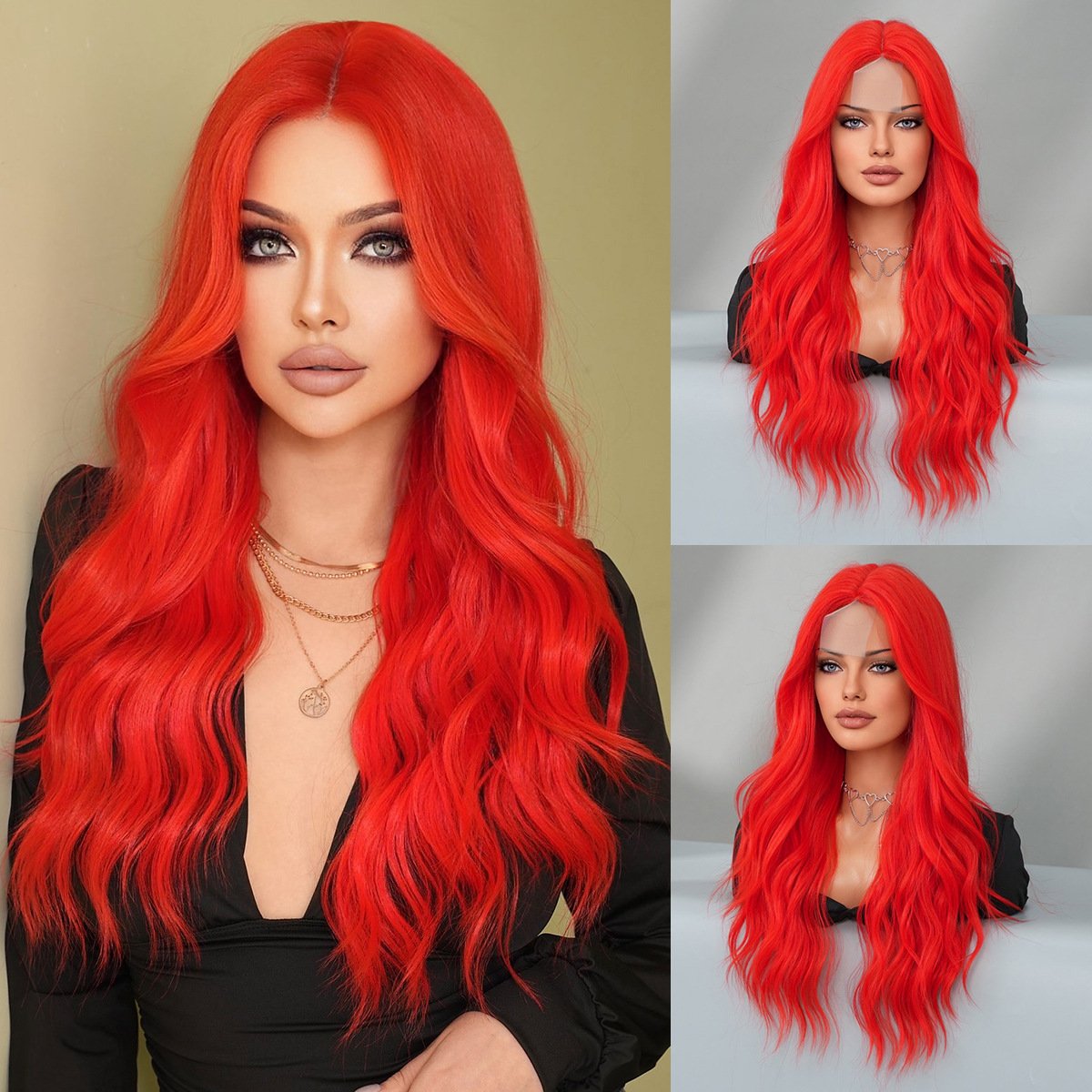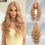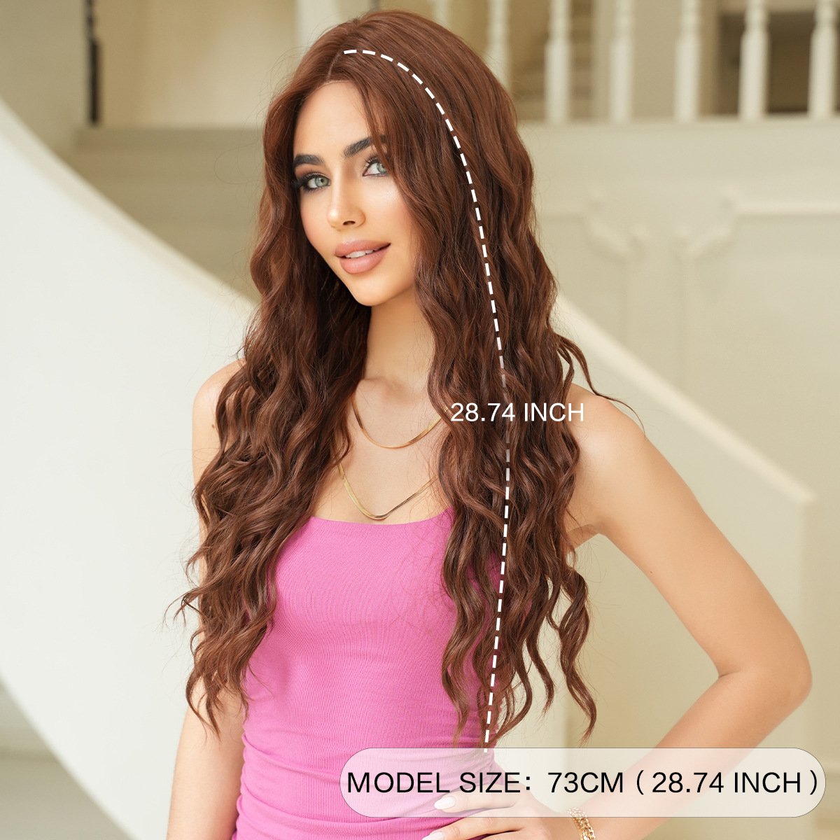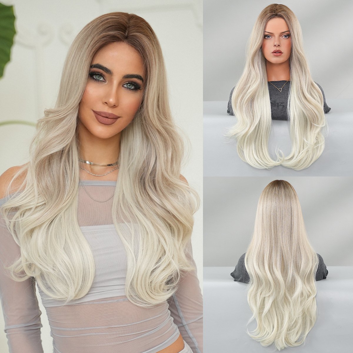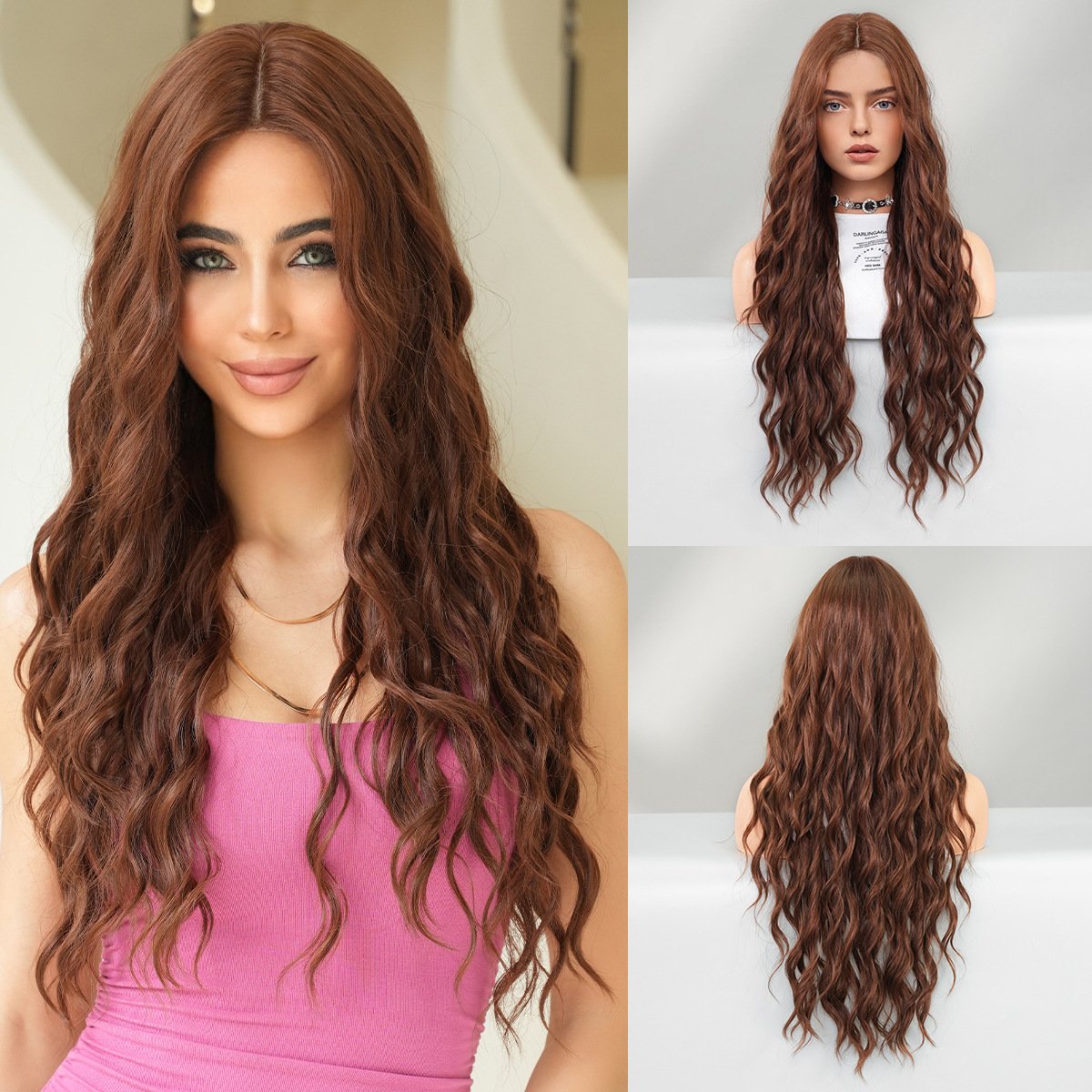 Brown gold water wave curly hair long hair wave wig women's full head cover high temperature silk chemical fiber full head cover
