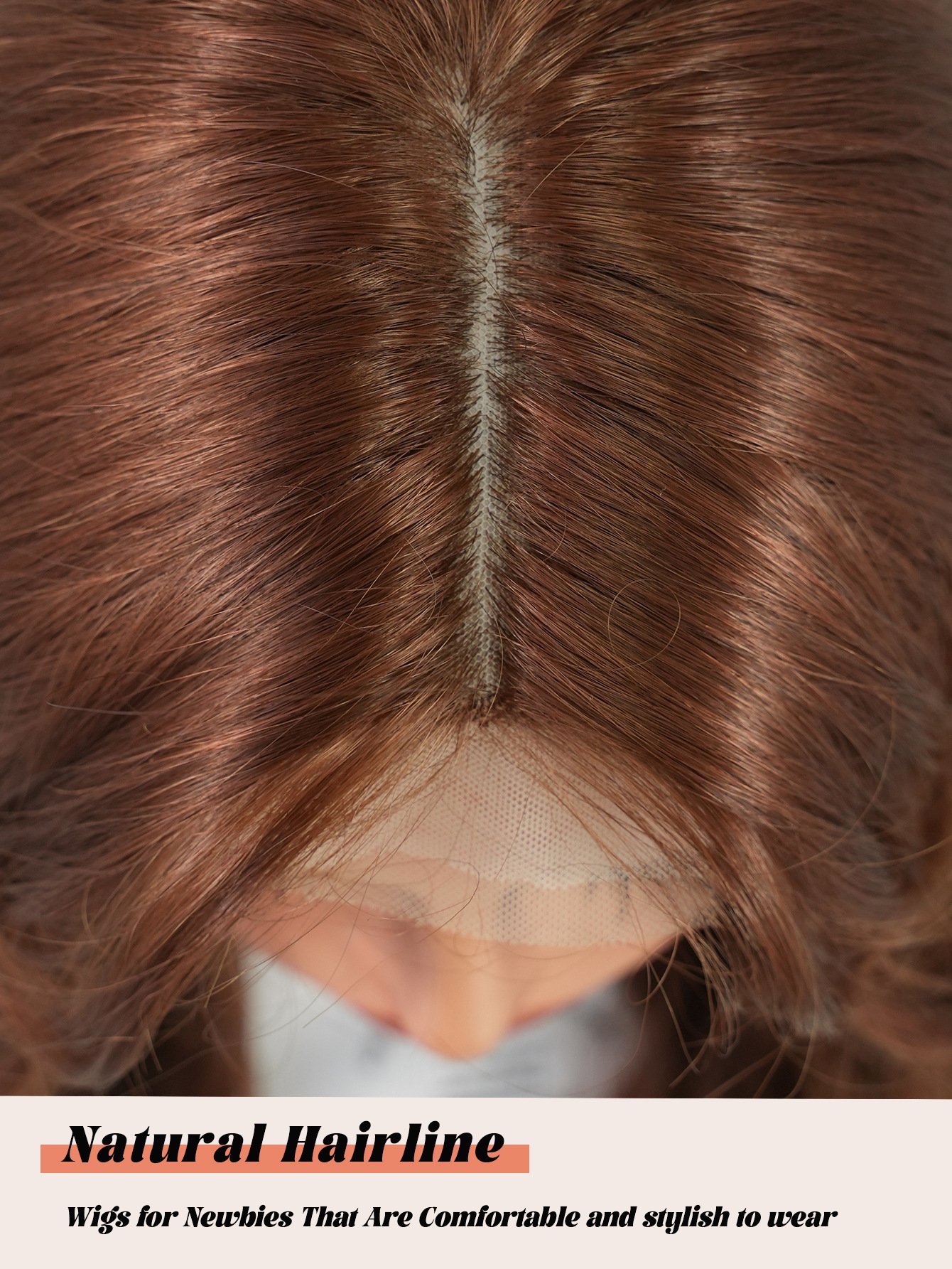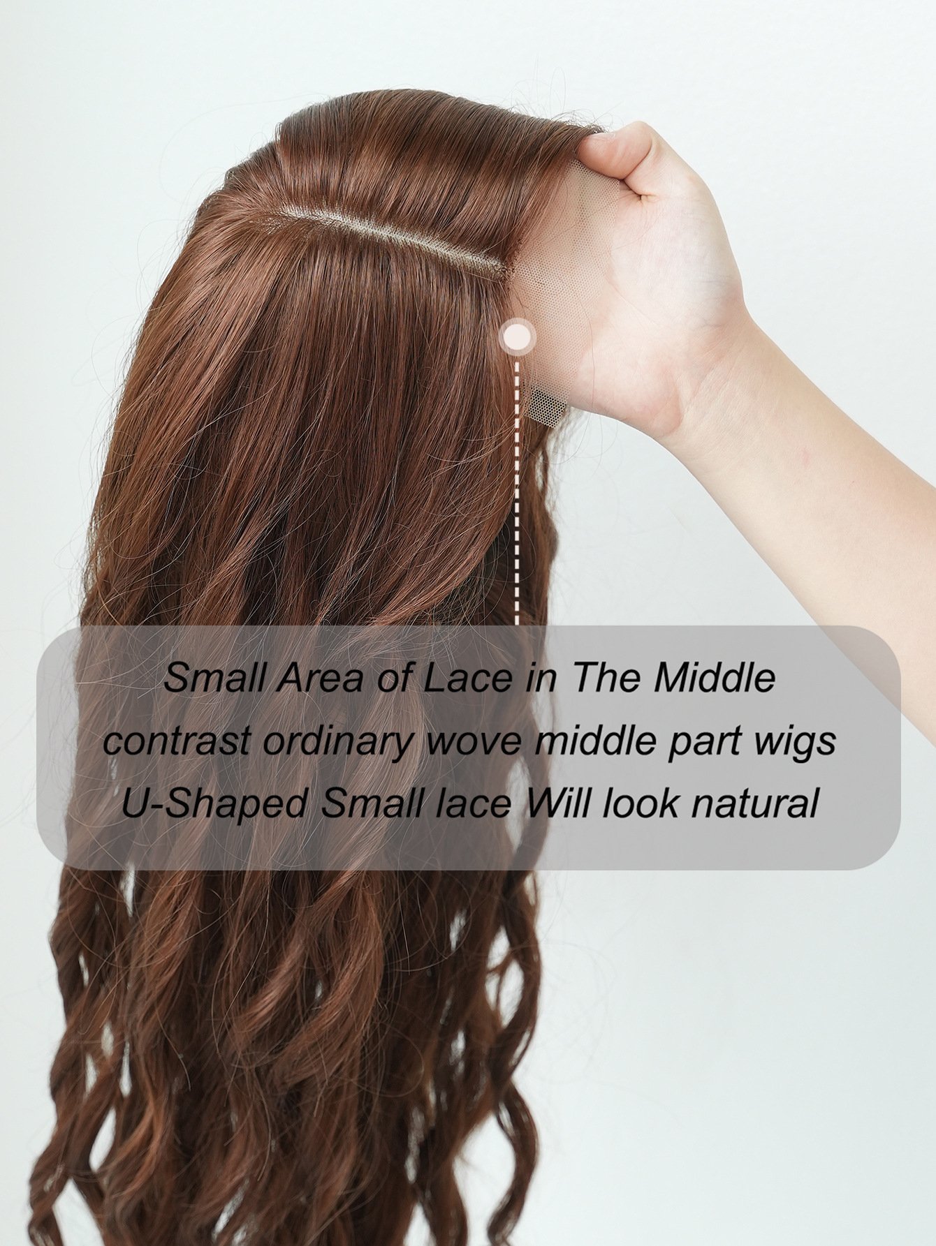 High quality brown small lace wig women forehead hand hook natural long curly hair large wave wig headgear