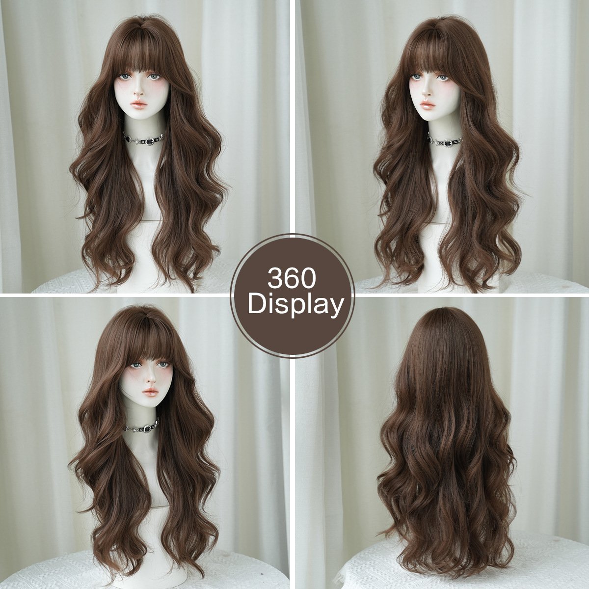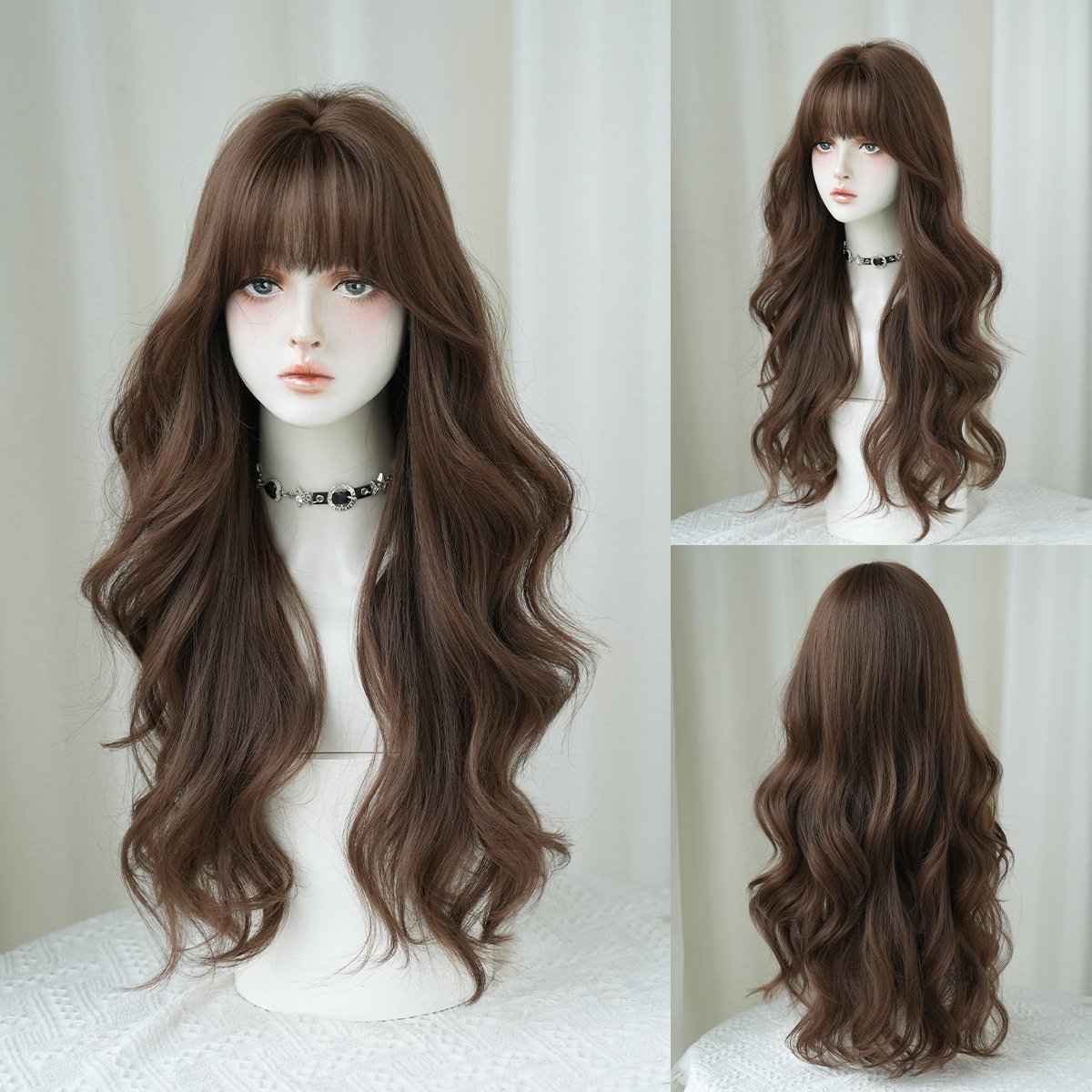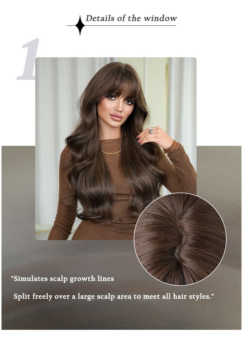 Model: Long Body Wave Curly Hair with Bangs Fake Hair