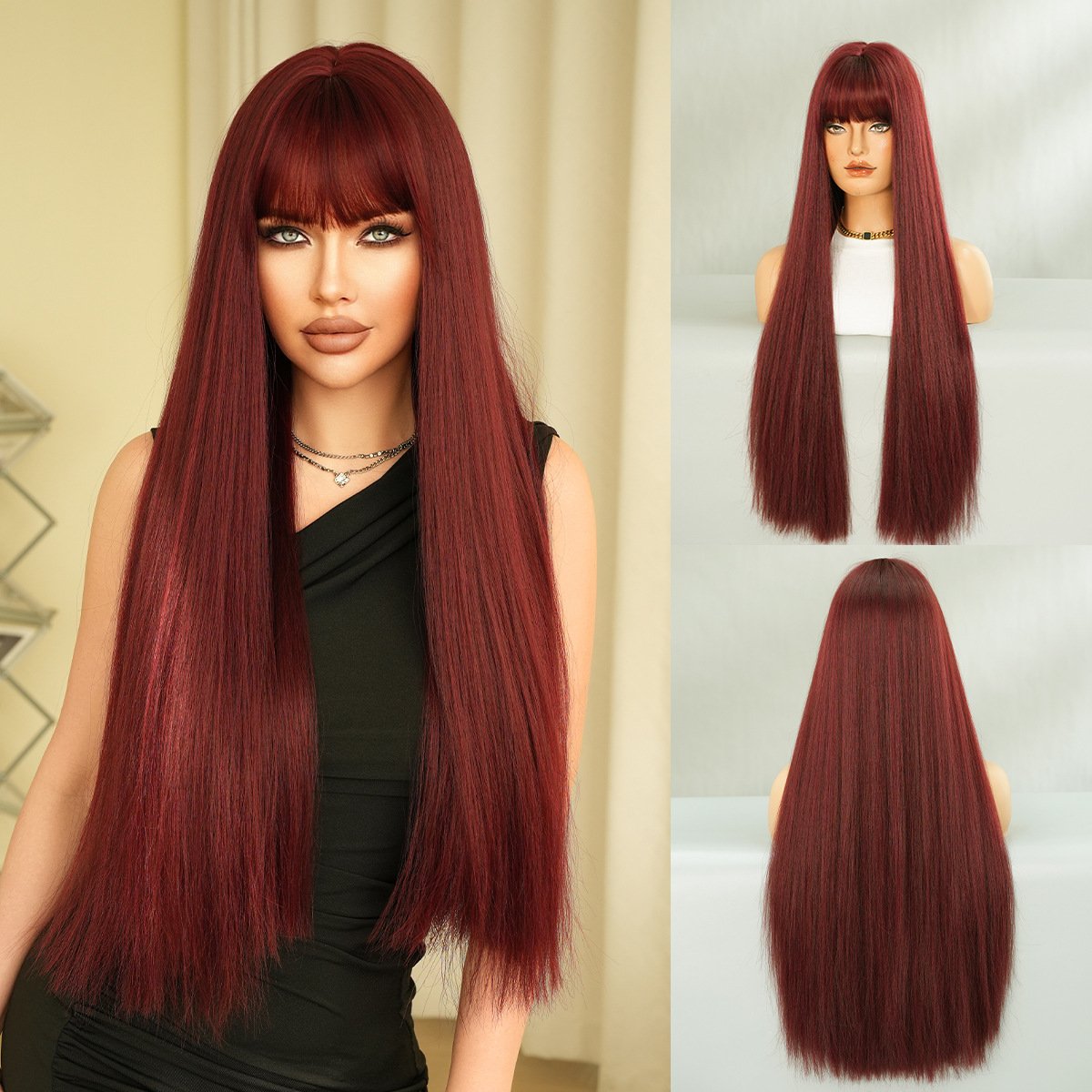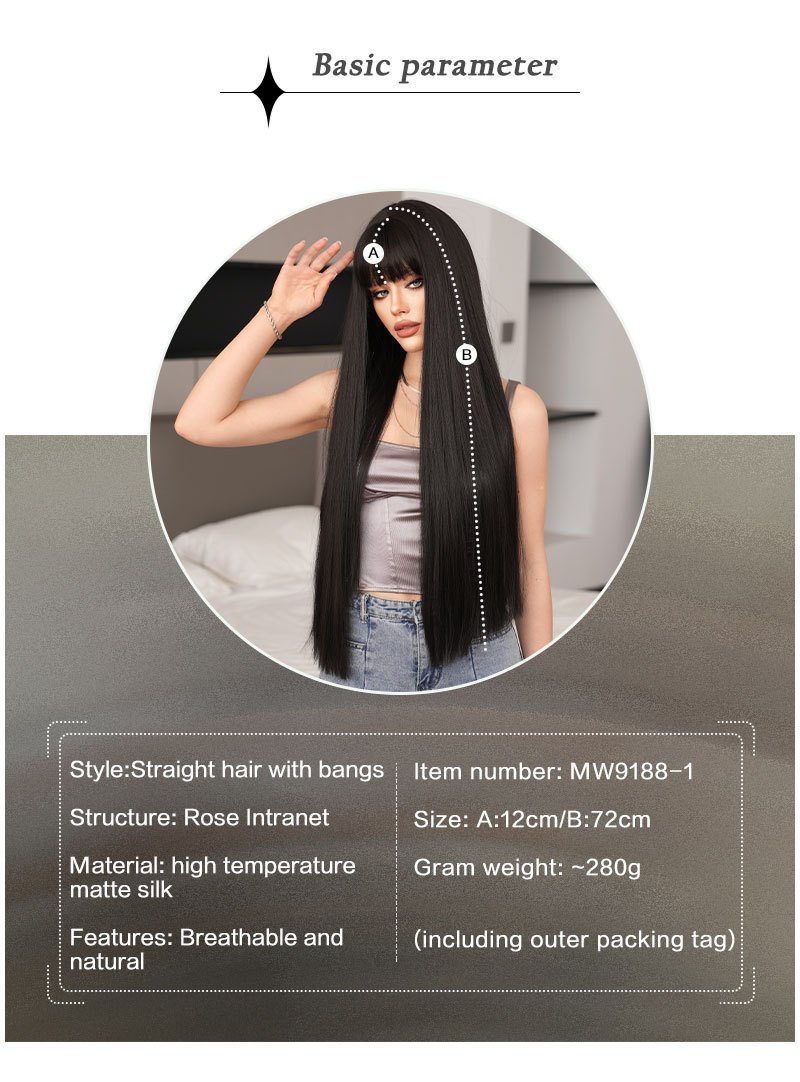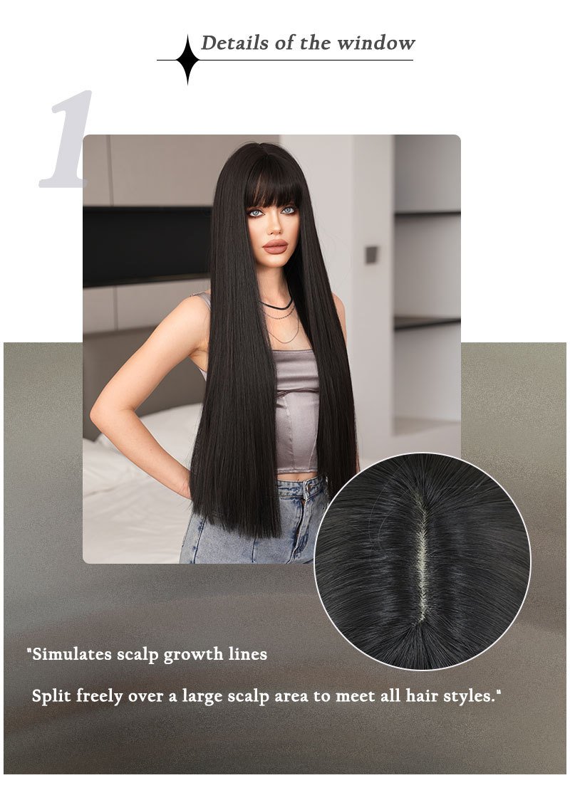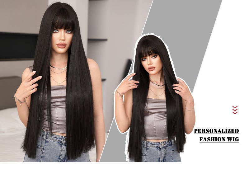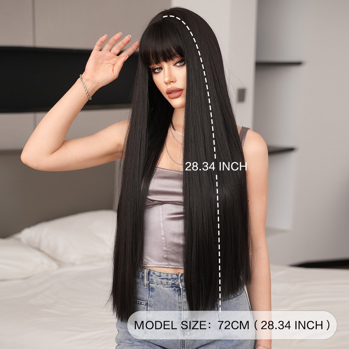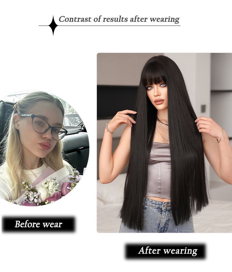 Model: Synthetic Long Straight Hair with Bangs Fake Hair