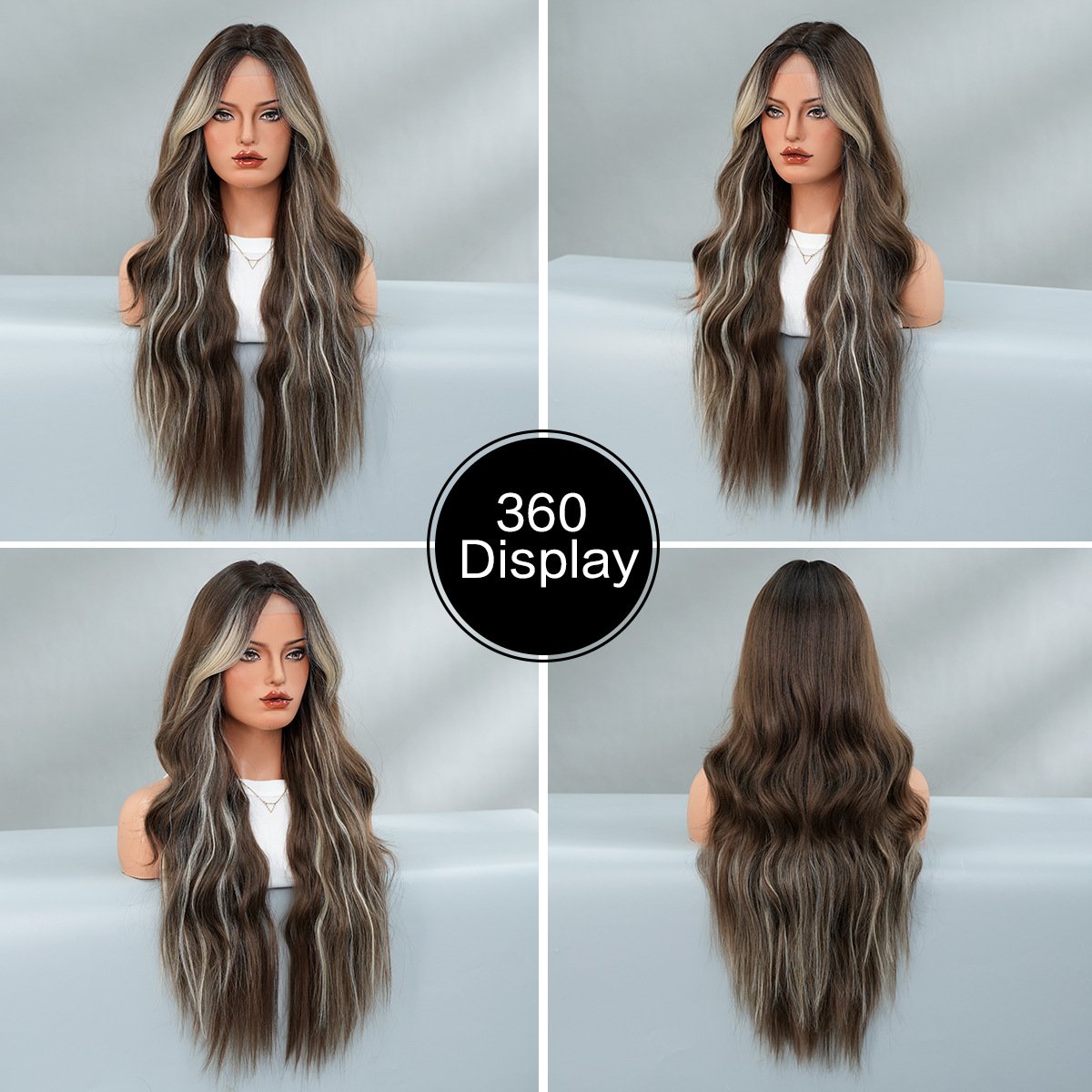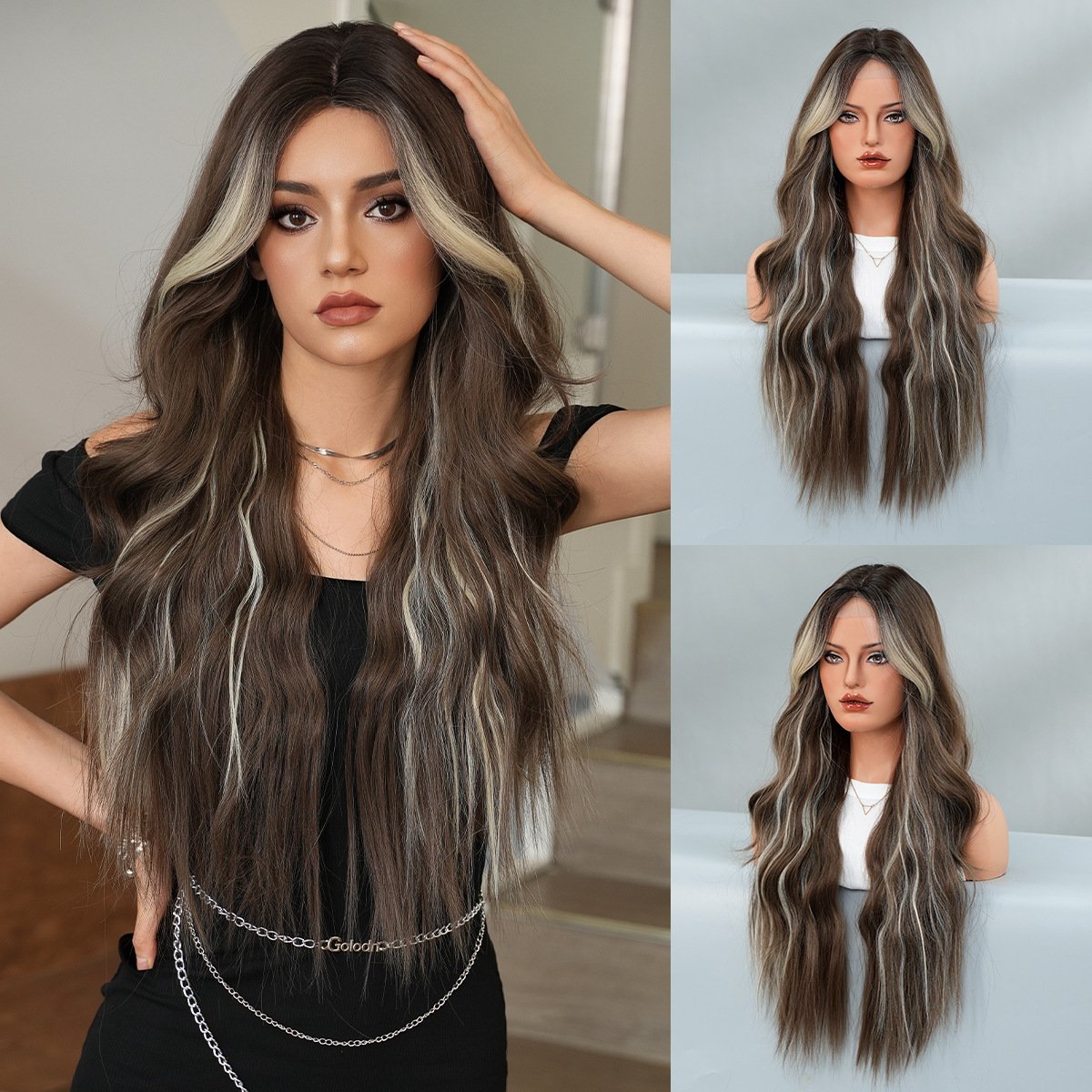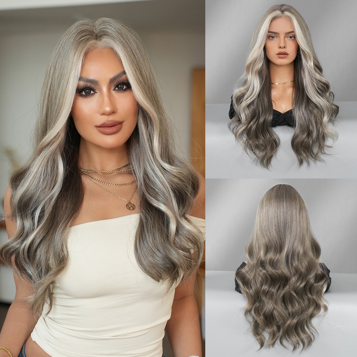 High quality small lace wig women’s full head forehead hand hook natural long curly hair large wave wig headgear