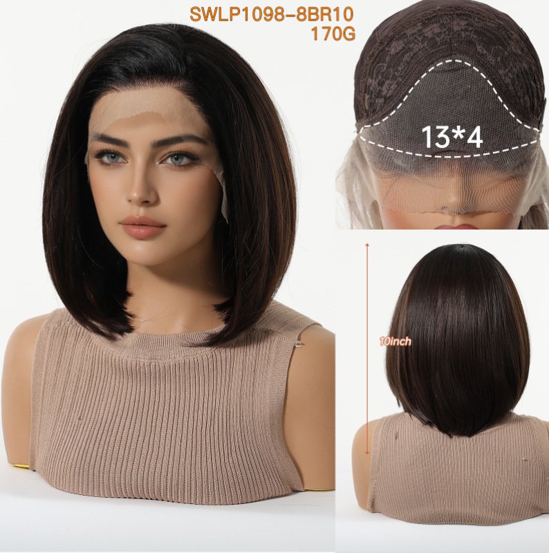 Female short straight brown mixed silk short hair fashionable synthetic headband