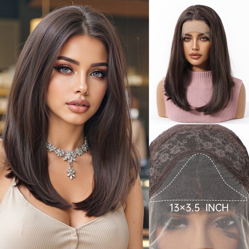 Wig Full Headset Female High Level Medium Long Hair Air Hairpin Brown Matte High Temperature Silk Synthetic Hair Wigs