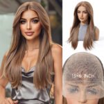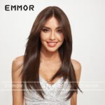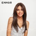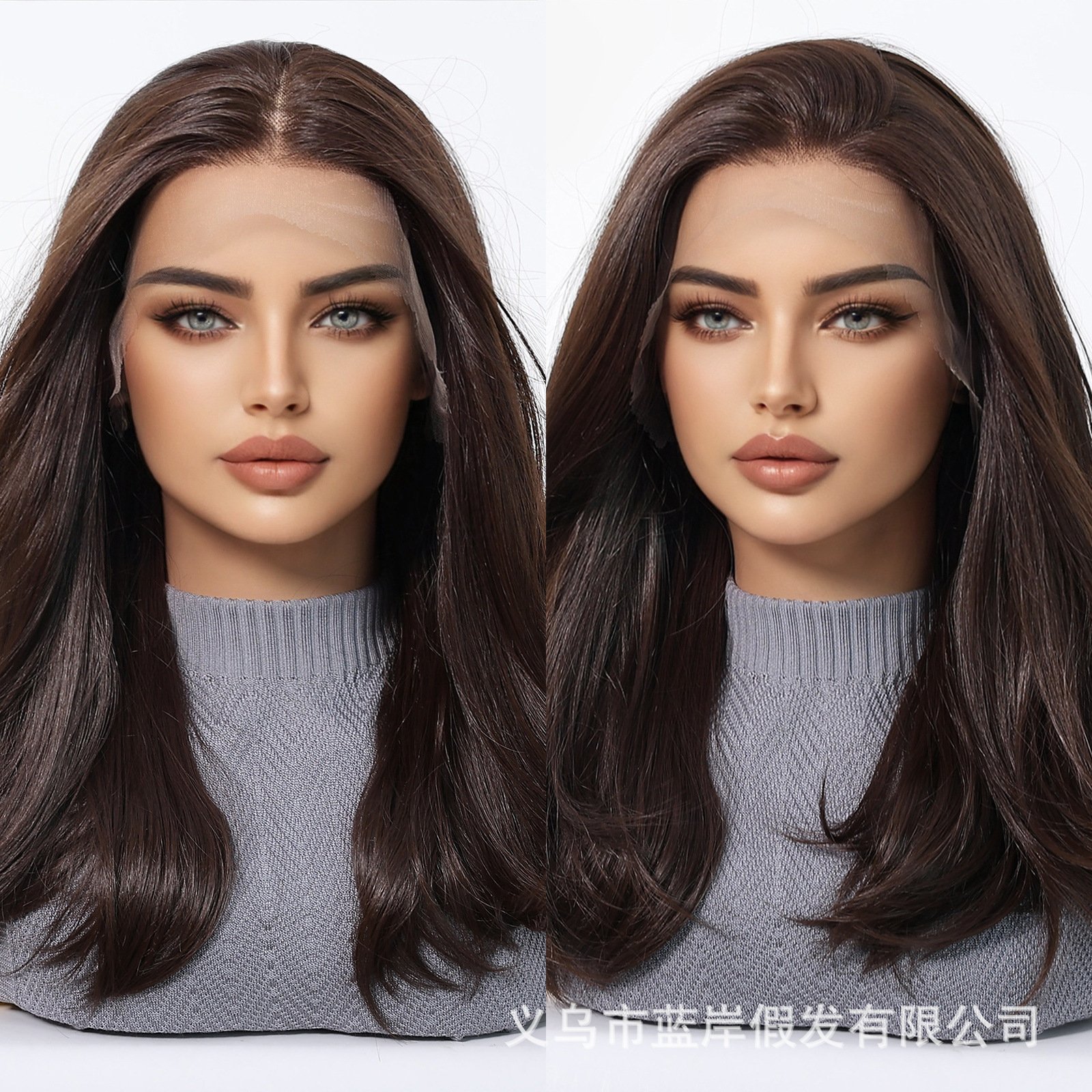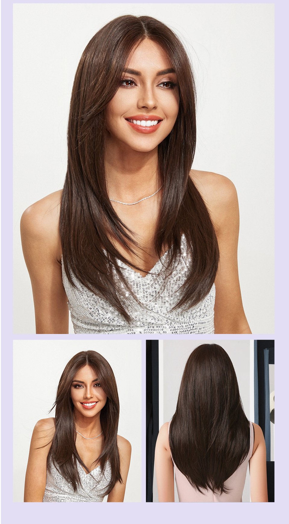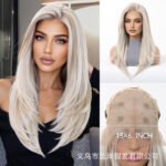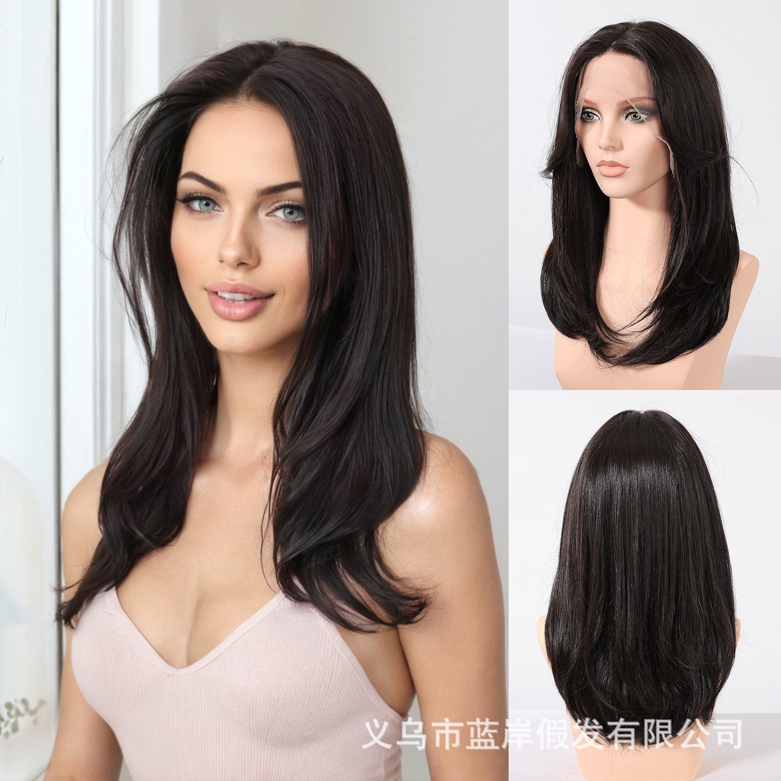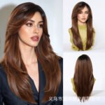 Lace wig with black brown long straight hair, fashionable full head hairstyle Wigs