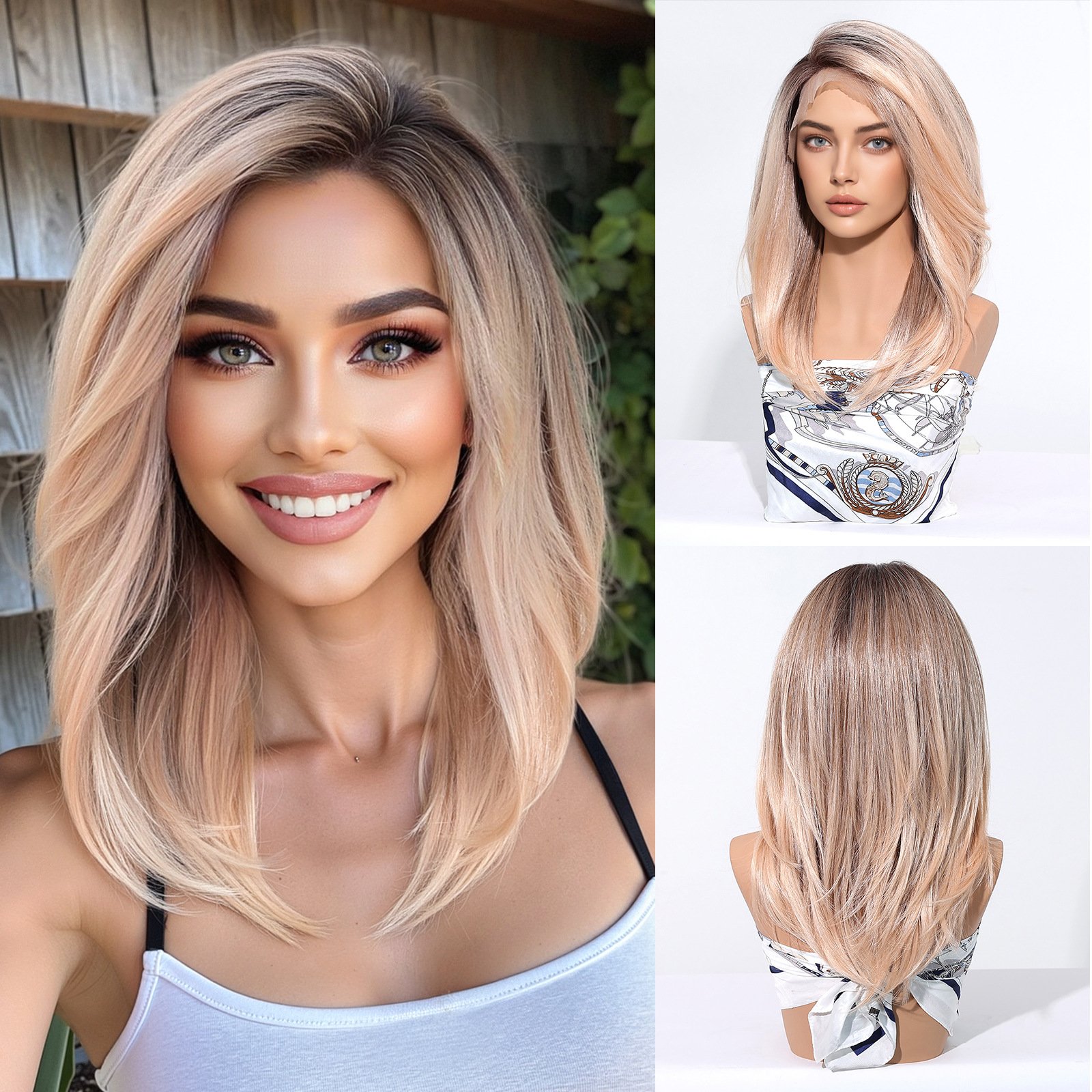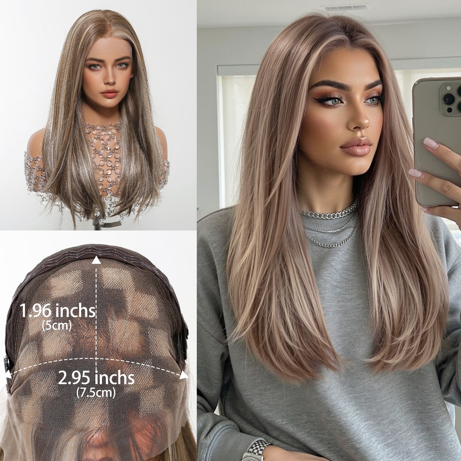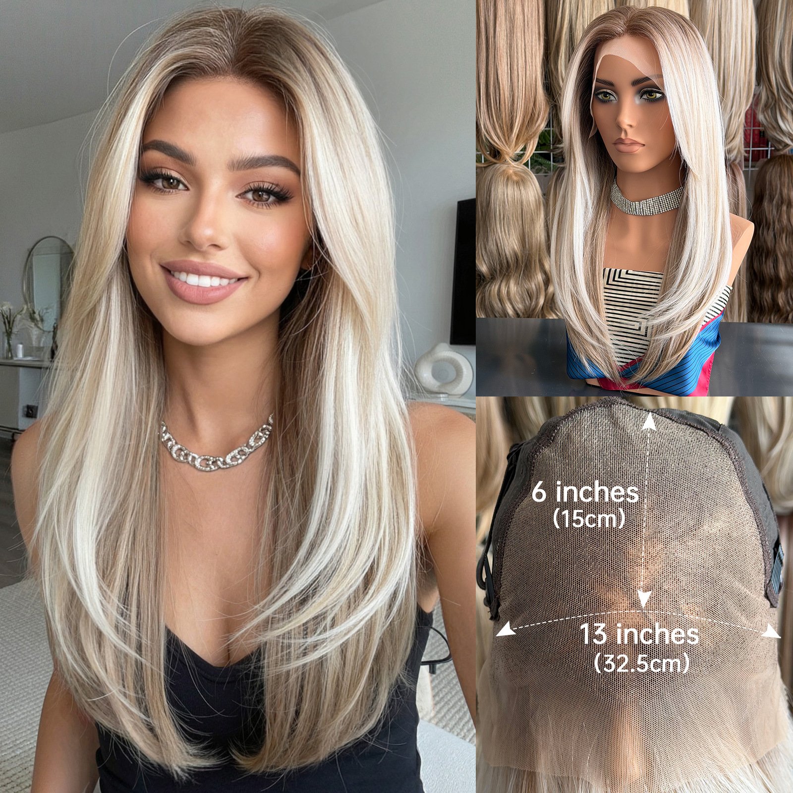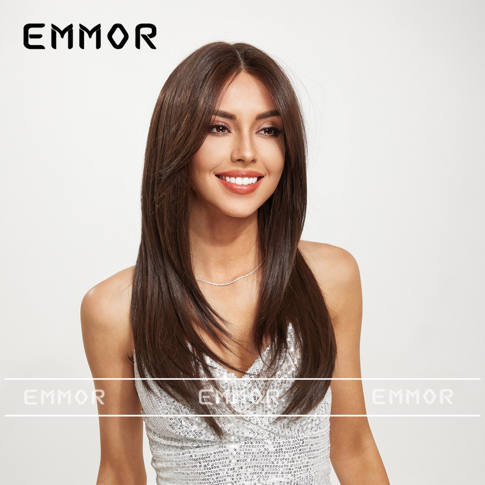 Lace wig with black brown long straight hair, fashionable full head hairstyle Wigs