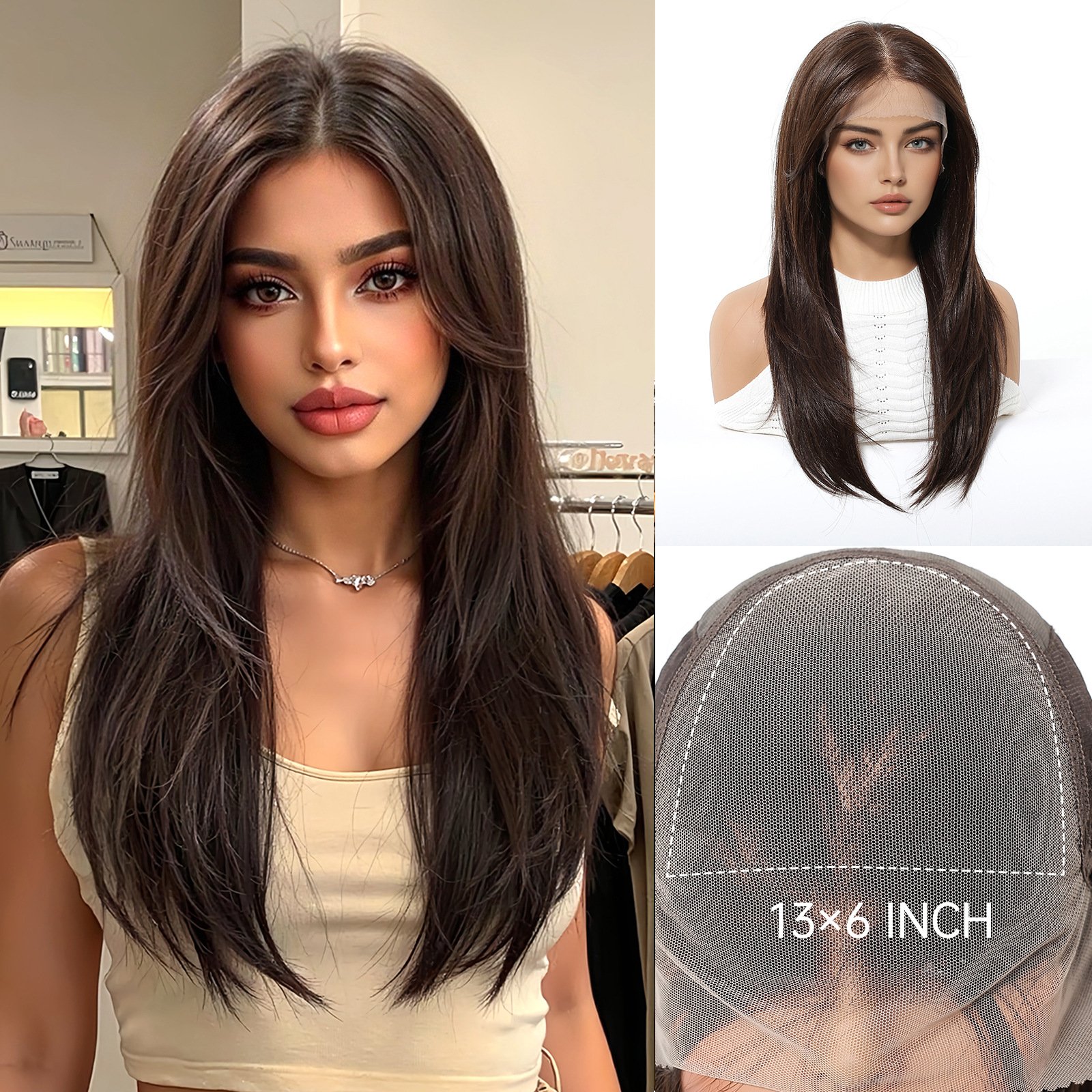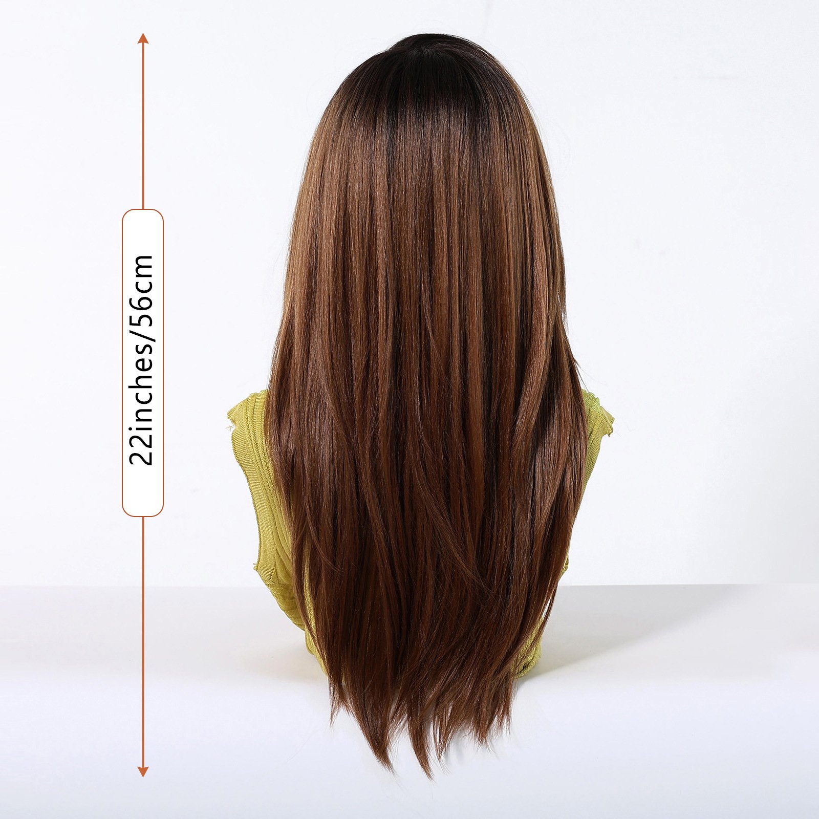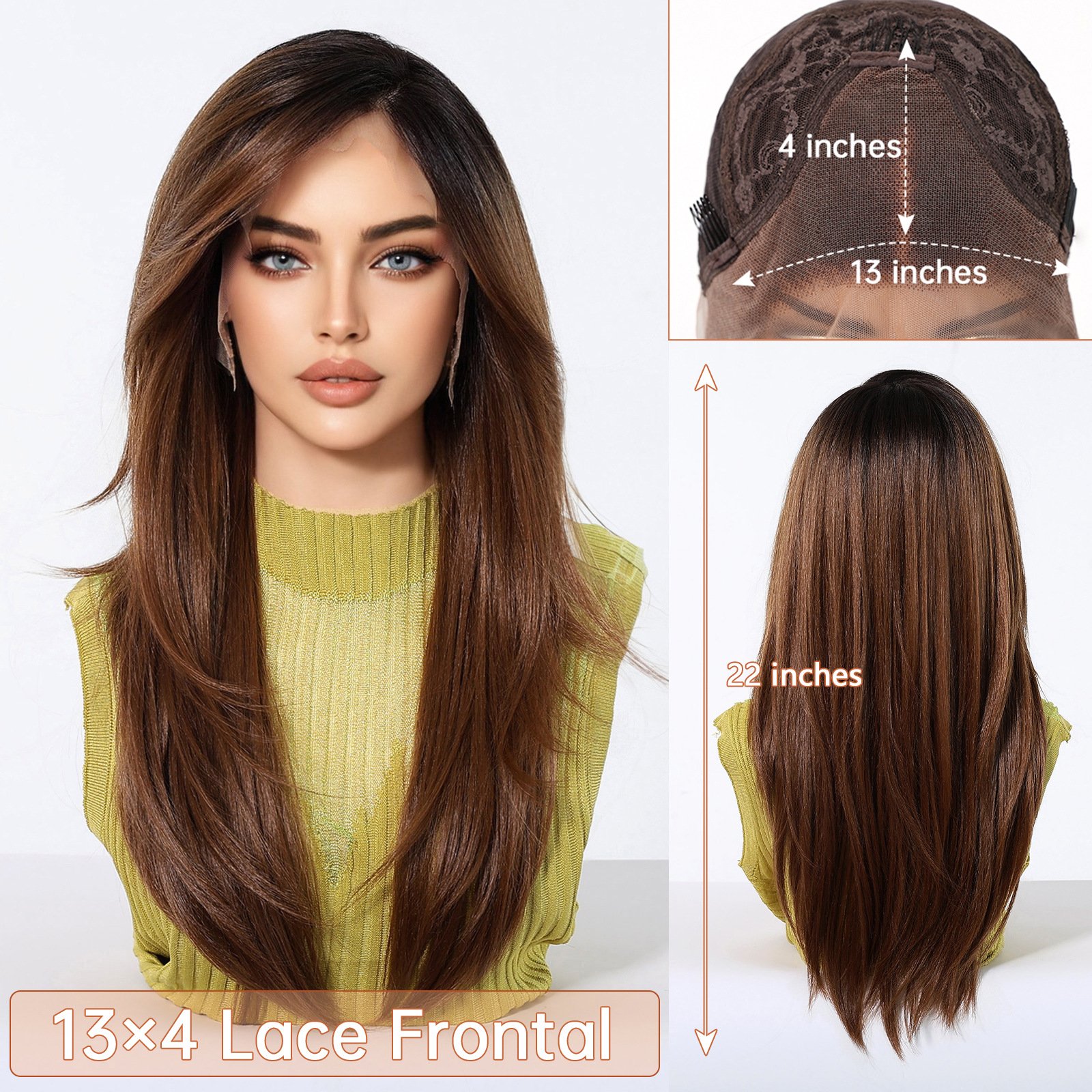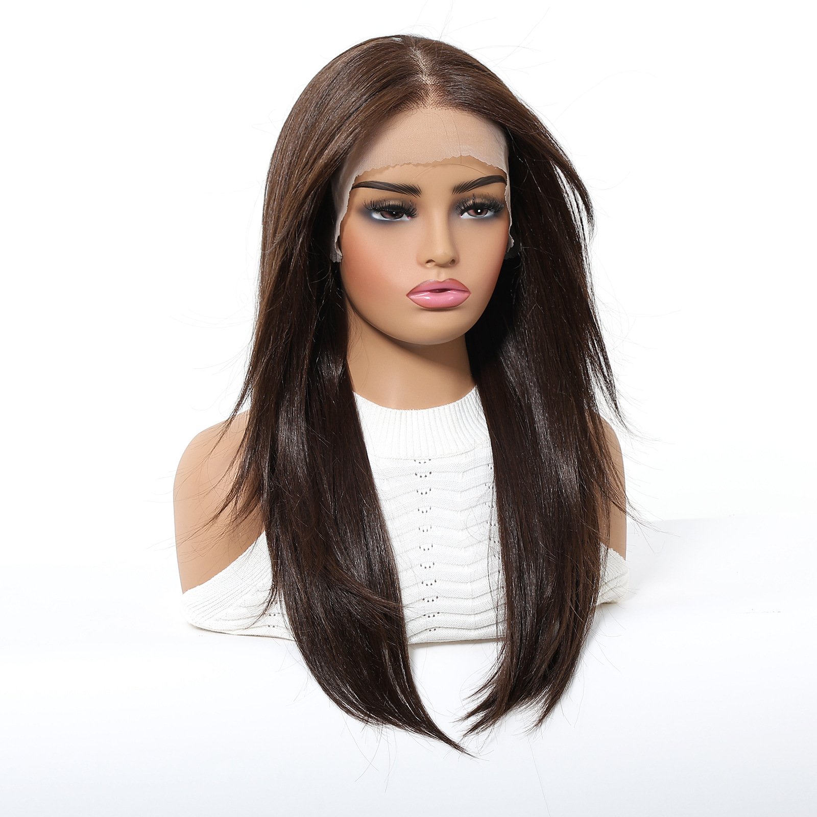 Large area hand hooked lace wig with gradient brown highlights, can be sewn freely, natural hairline full head cover