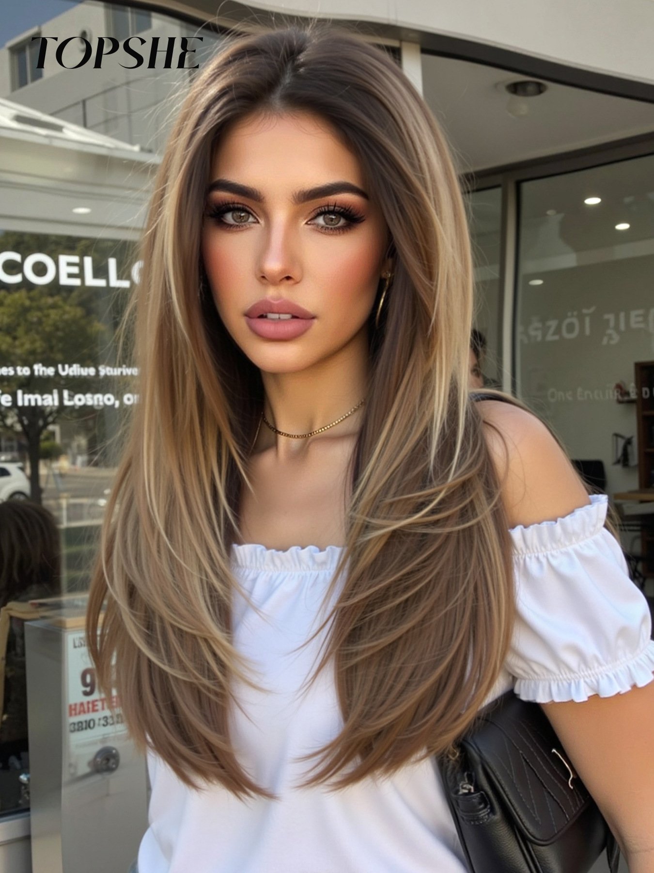 Be the first to review “Large area hand hooked lace wig with gradient brown highlights, can be sewn freely, natural hairline full head cover” Cancel reply