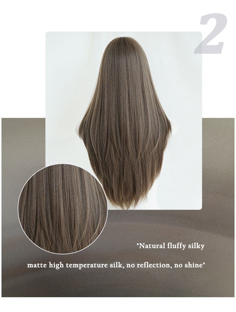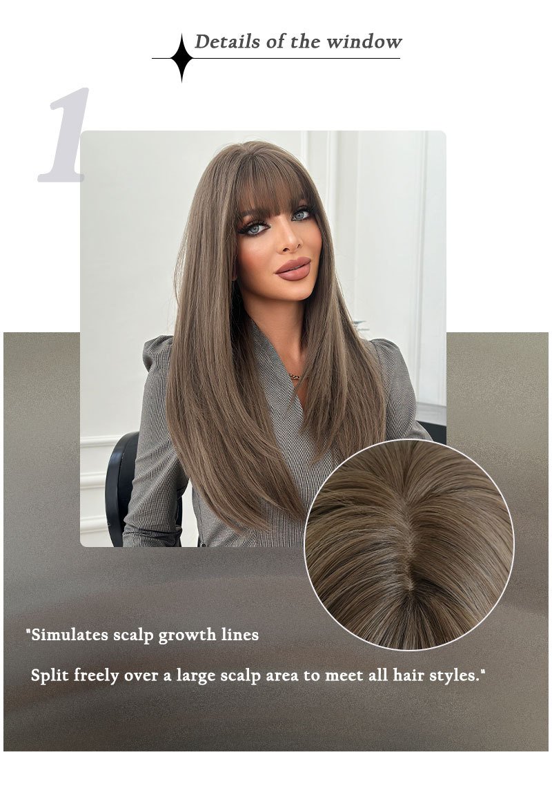 Layered Medium Length Ash Brown Wig with Bangs