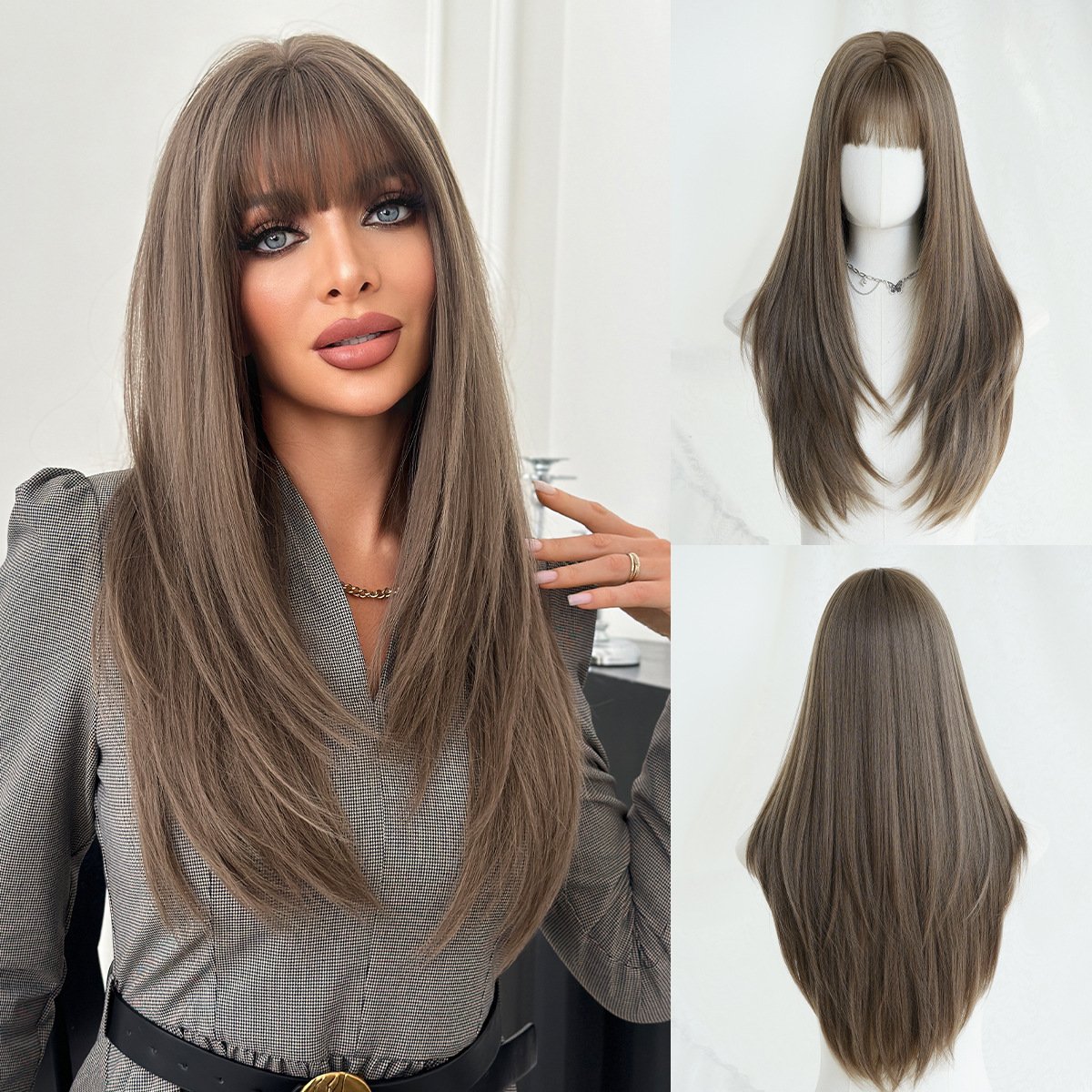 Layered Medium Length Ash Brown Wig with Bangs