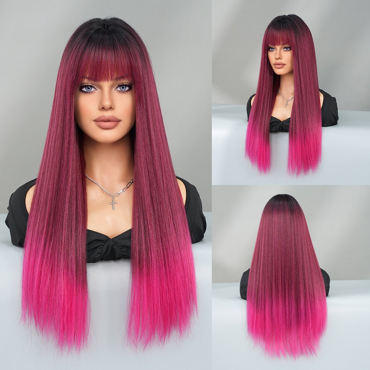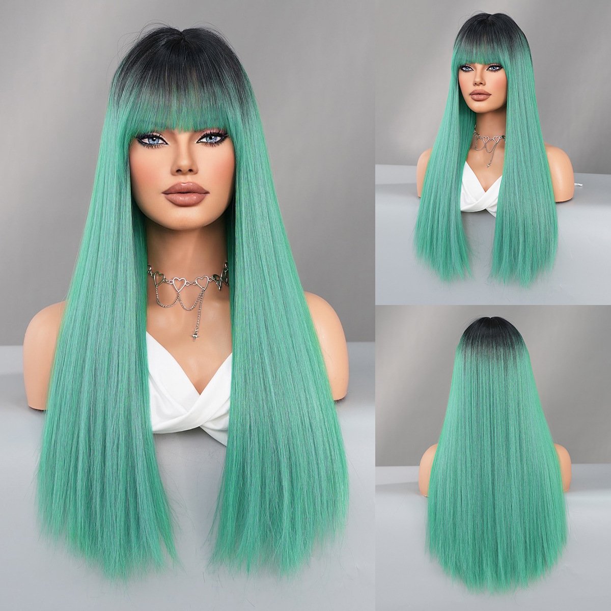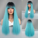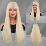 Fashionable Long Straight Bob Wig with Air Bangs – Synthetic Hair for Women