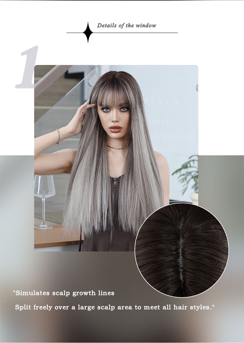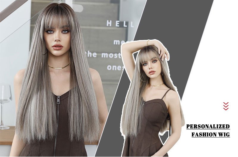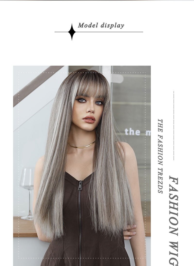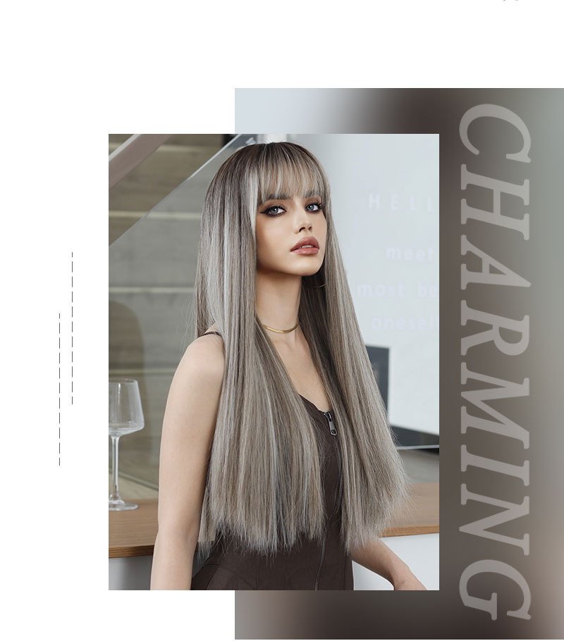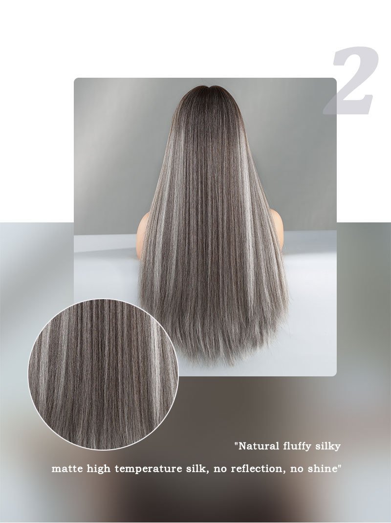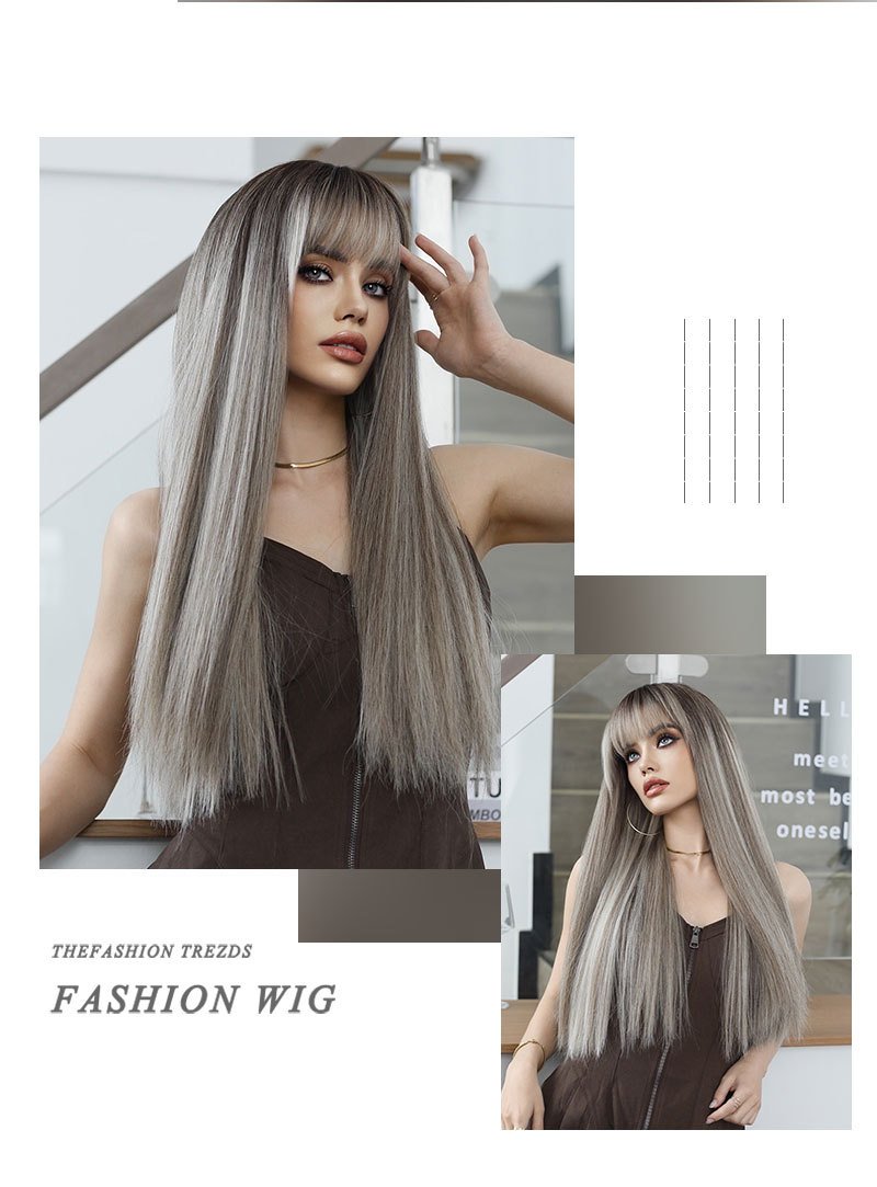 Linen Brown Spotted Long Straight Hair European and American Women’s Fashion Wig Chemical Fiber Wig Headgear