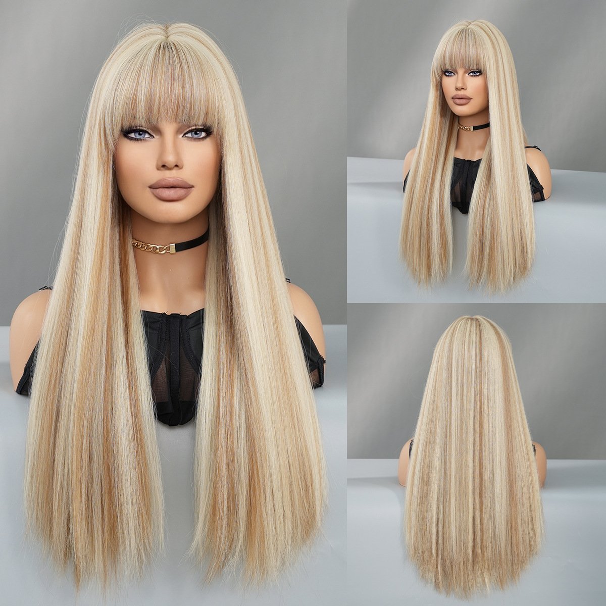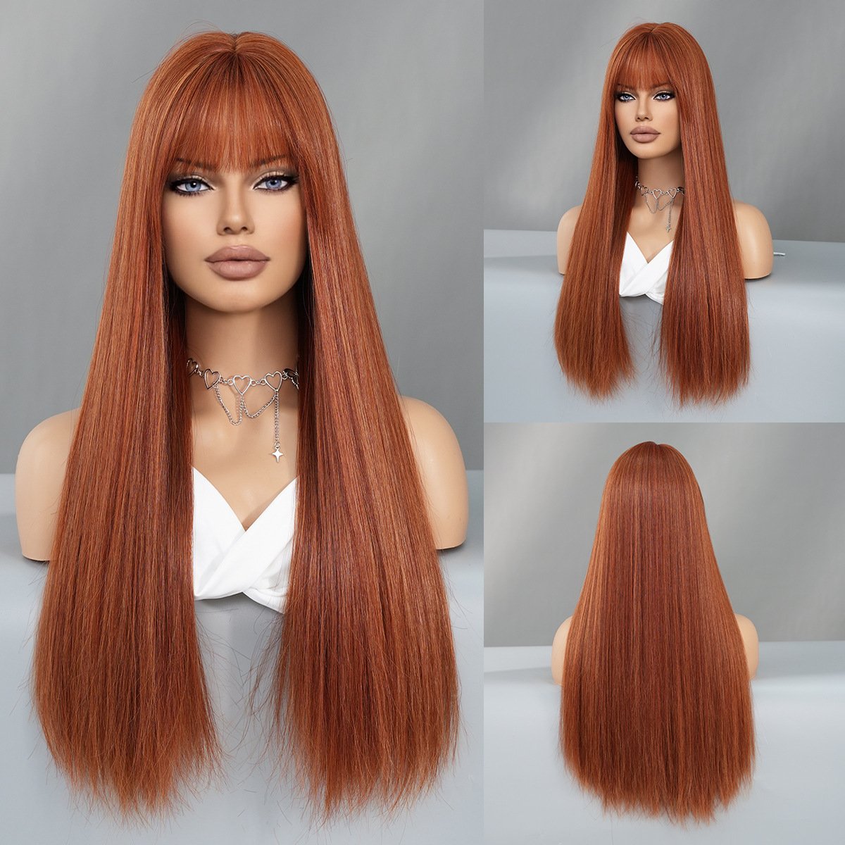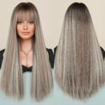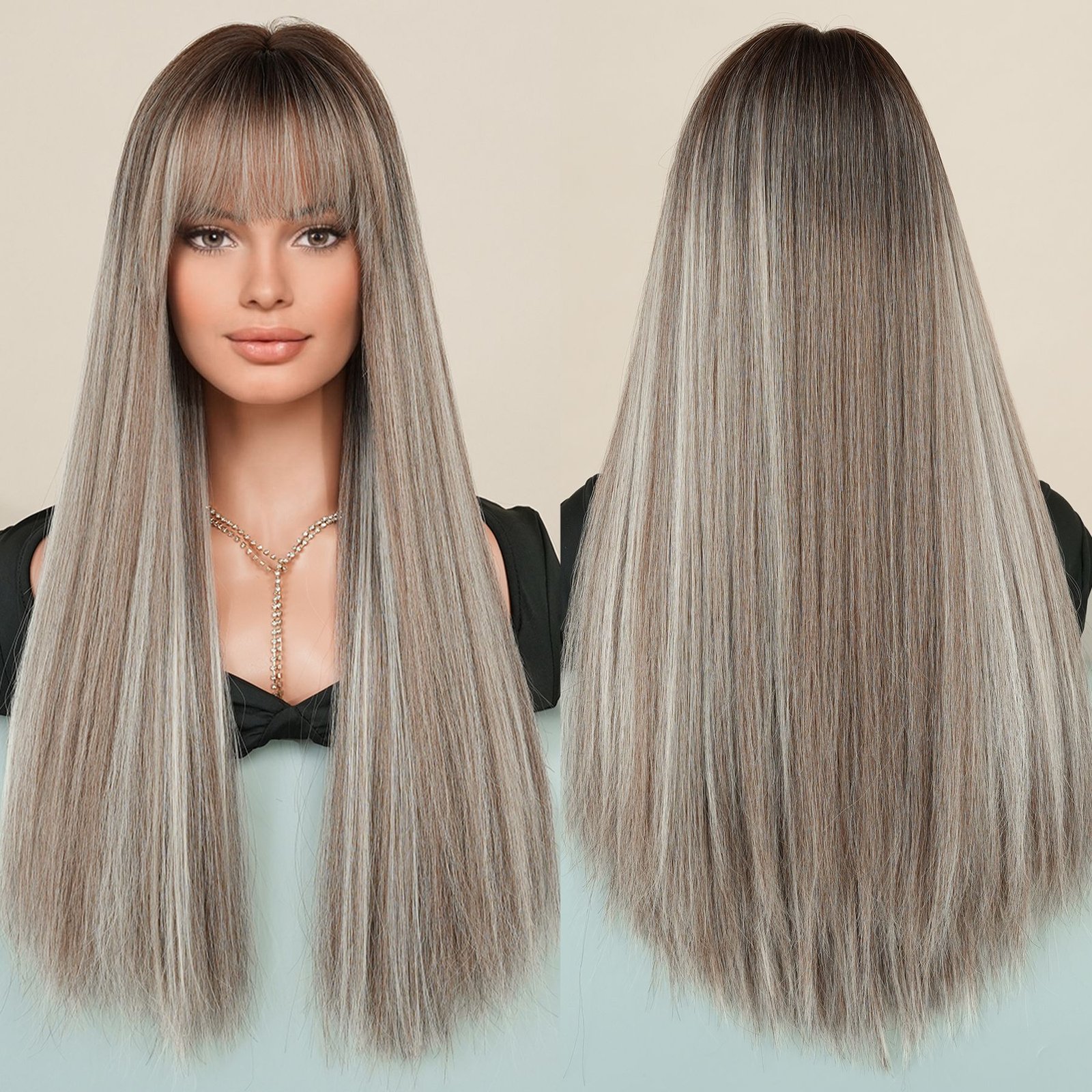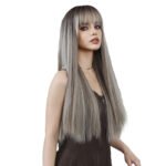 Model: Long Straight Highlight Brown Wigs with bangs
