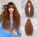 Elegant Long Curly Ginger Wig with Breathable Bangs