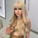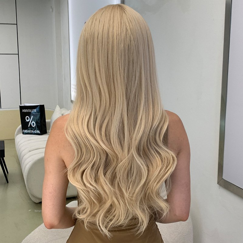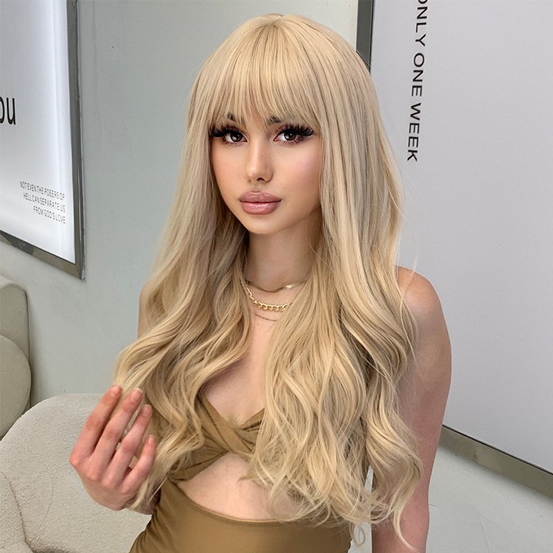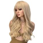 Luxurious Wavy Blonde Wig with Fringe – Premium 13×4 HD Lace Frontal