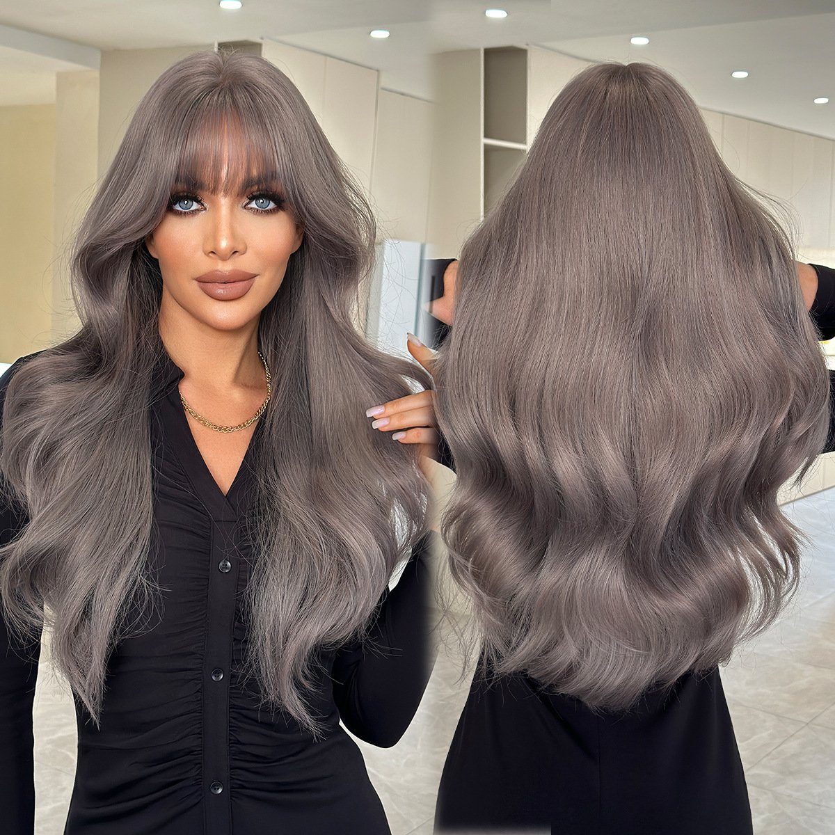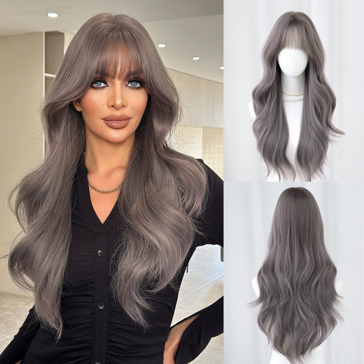 Be the first to review “Natural Black Tea Brown Qi Bangs Long Curly Hair Wig Girls’ Full Head Cover High Quality Wig for Daily Use” Cancel reply