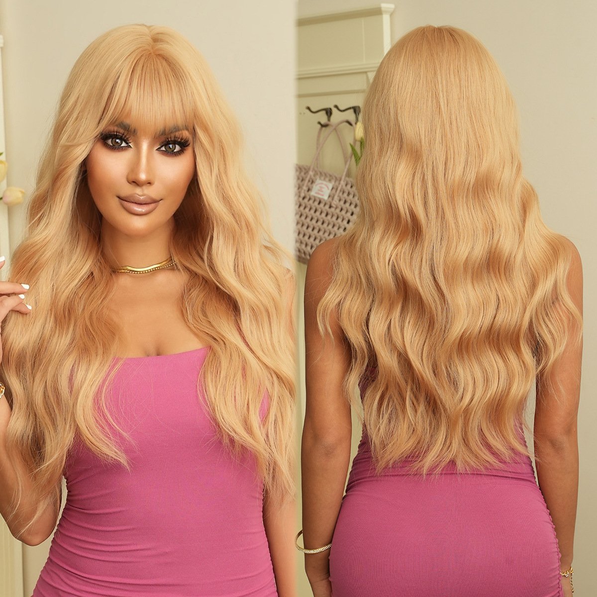 Model: Synthetic Fake Hair Long Body Wave Wig with Bangs