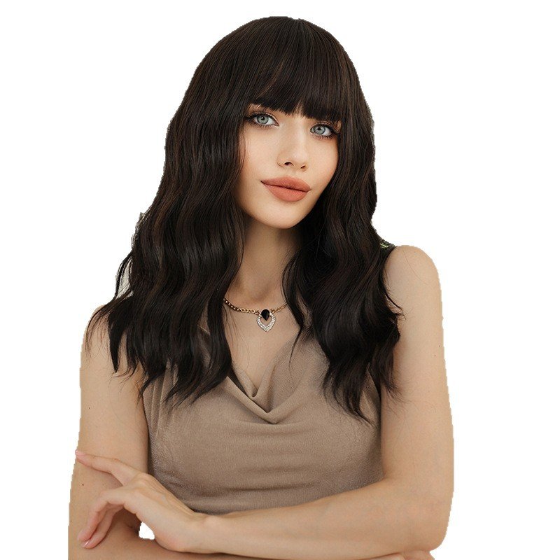 Natural Fluffy Water Wave Black Wig with Fringe – Premium Synthetic Hair
