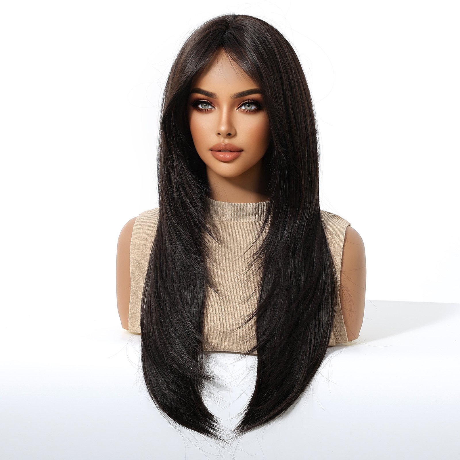 New Hot Selling Wig Women’s Daily Korean Style Cold Brown Long Straight Hair Gentle Sweet Face Reduction Full Head Cover
