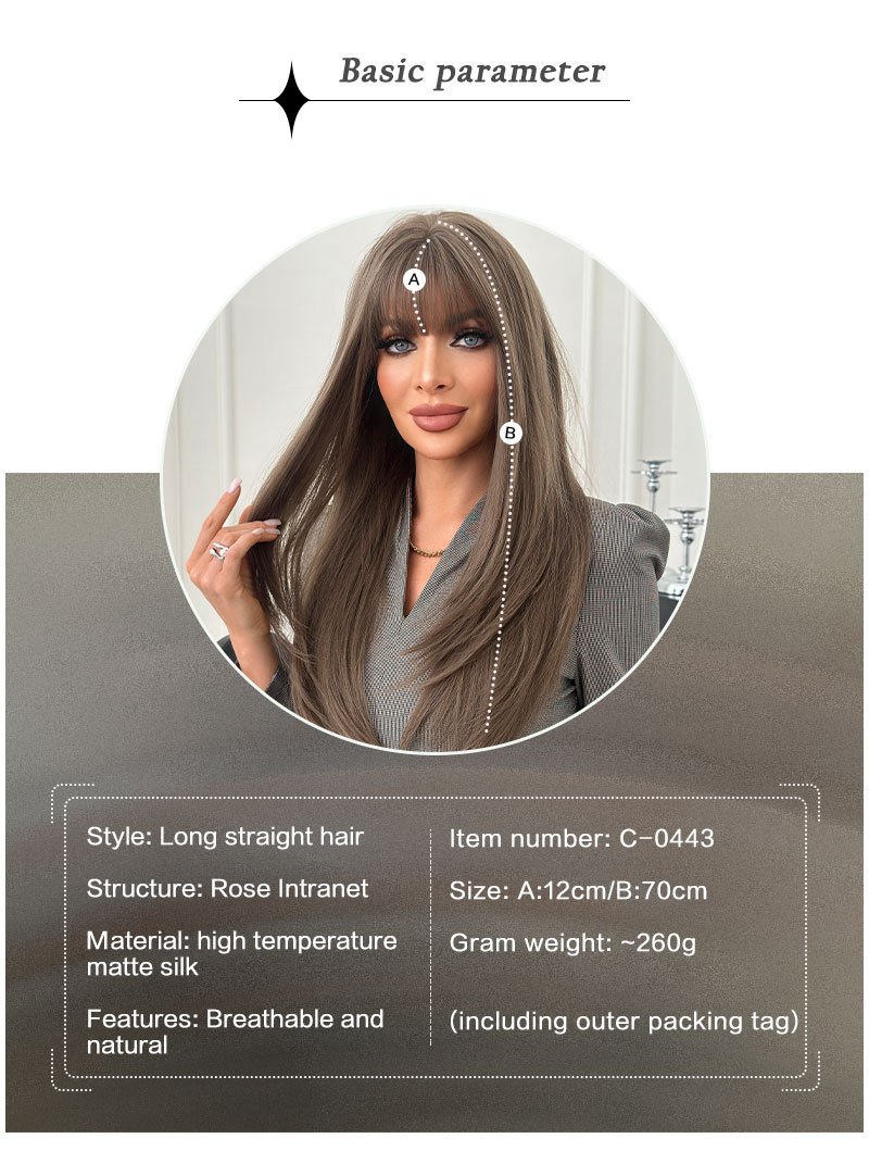 New Style Wig Tea Brown High Level Inner Buckle Straight Hair Straight Bang Daily High Quality Wig Women’s Full Head Cover