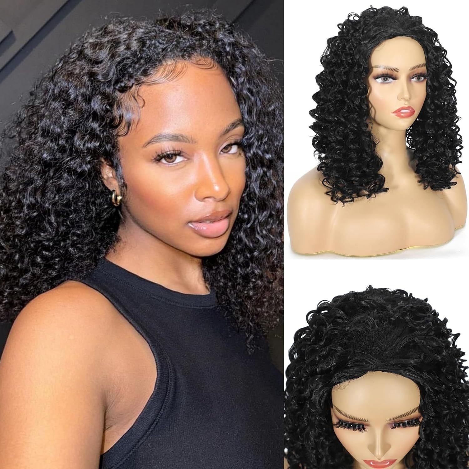 Elegant Brown Curly Wig – High-End Synthetic Fiber Headpiece