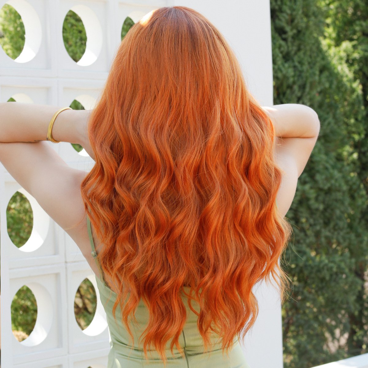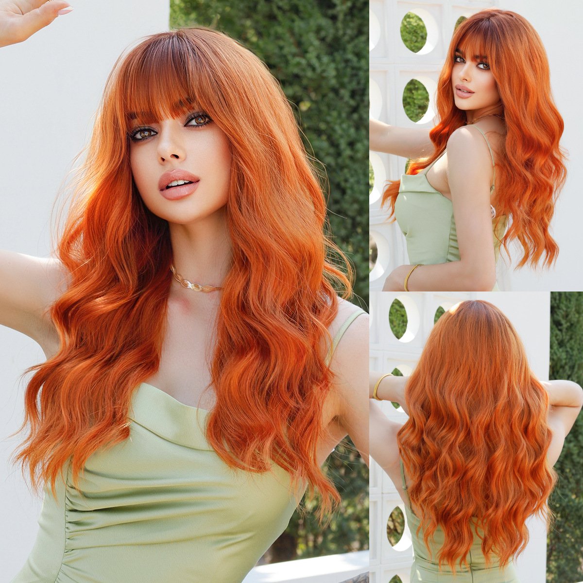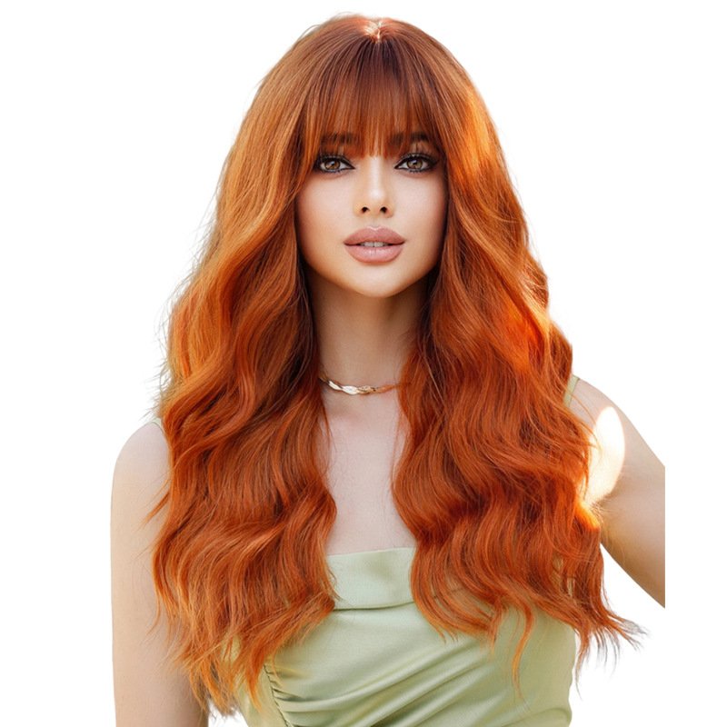 Orange Wig with Bang Wavy Long Curly Hair Ginger Wig Headgear Orange Ginger Wigs