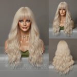 Model: Synthetic Long Wavy Orange Ginger Wigs with Bangs
