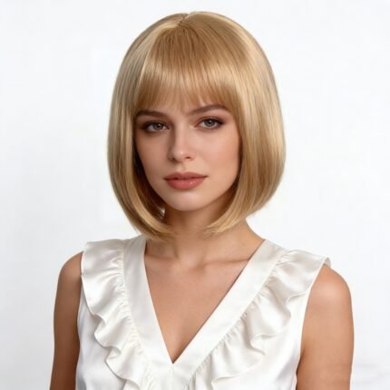 Modern Short Brown Bob Wig – Elegant Straight Synthetic Hairpiece