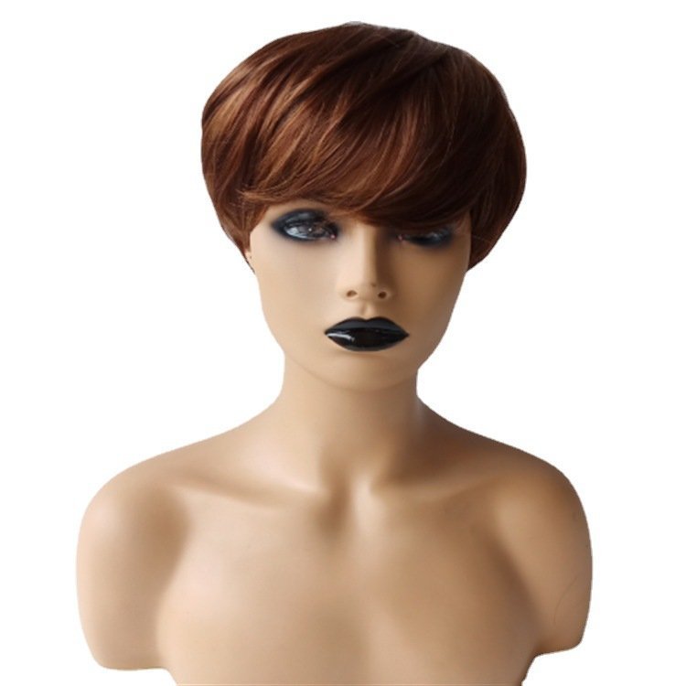 Female short straight brown mixed silk short hair fashionable synthetic headband