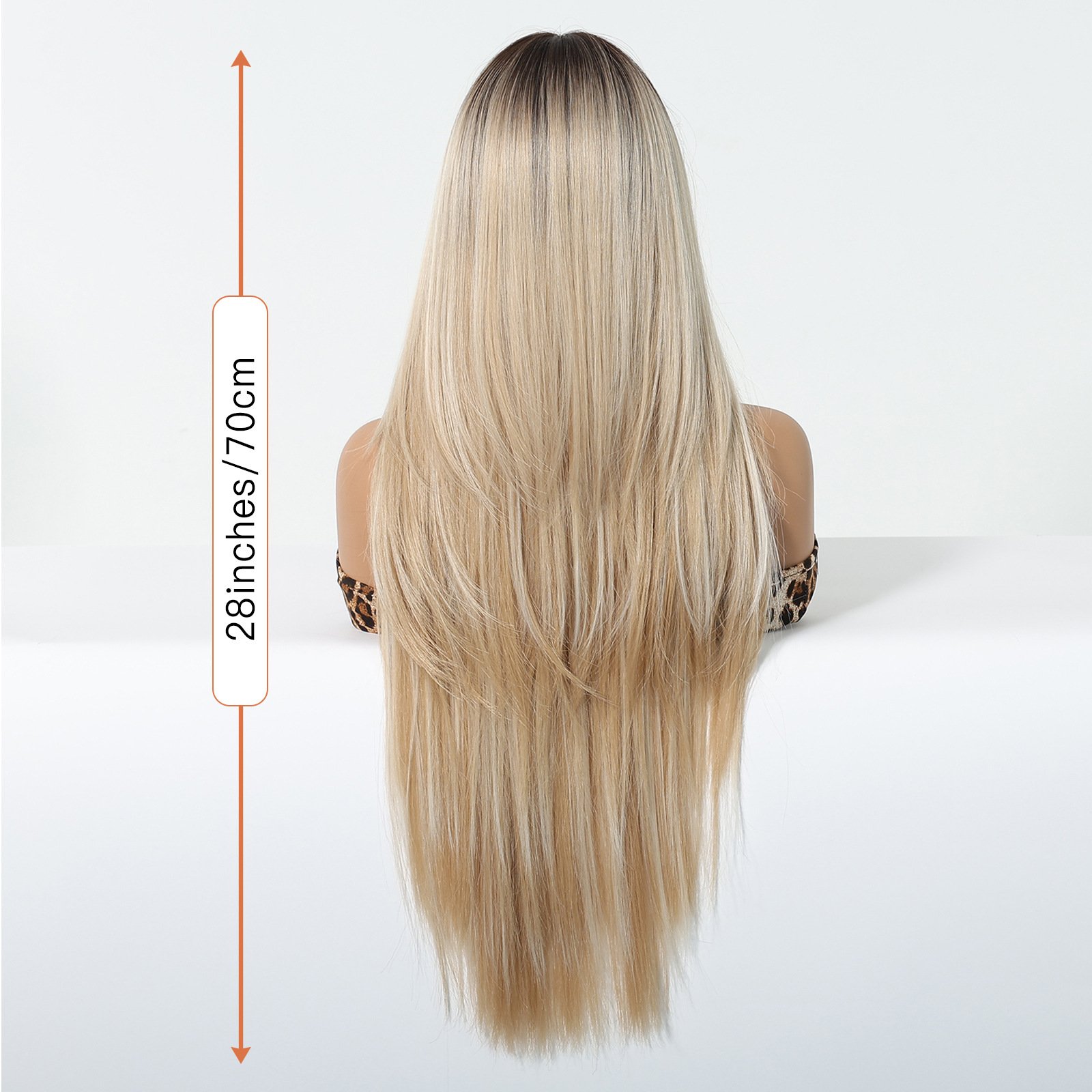 Gradient Gold Wig Female Full Headset Medium Long Hair Wig Halloween Cosplay Style Synthetic Hair