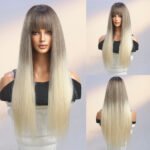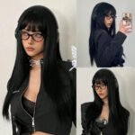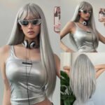 Fashionable Long Straight Bob Wig with Air Bangs – Synthetic Hair for Women