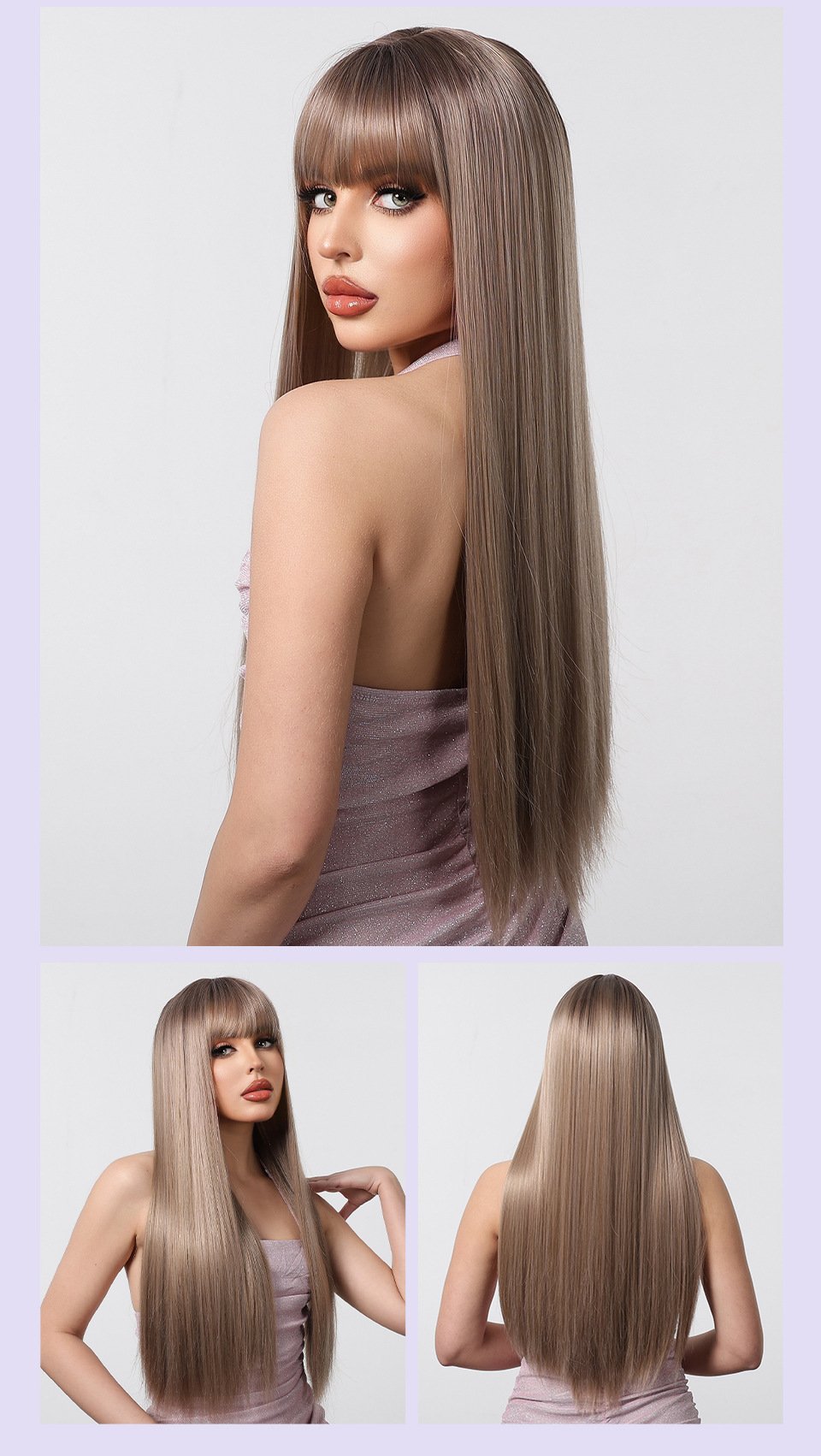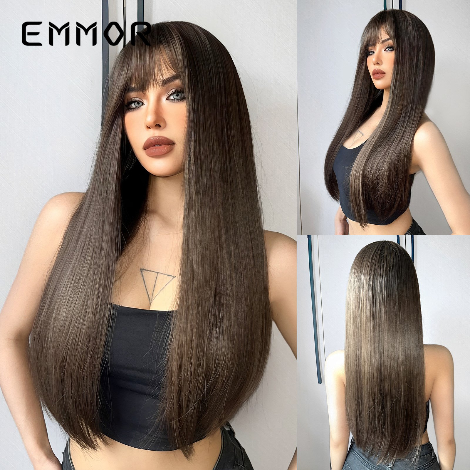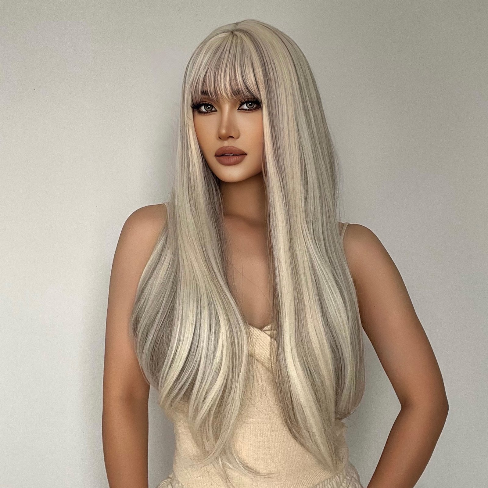 Be the first to review “Qi Liu Hai champagne brown long straight hair temperament goddess wig synthetic full head cover” Cancel reply