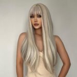 Platinum Blonde Wavy Wig with Air Bangs