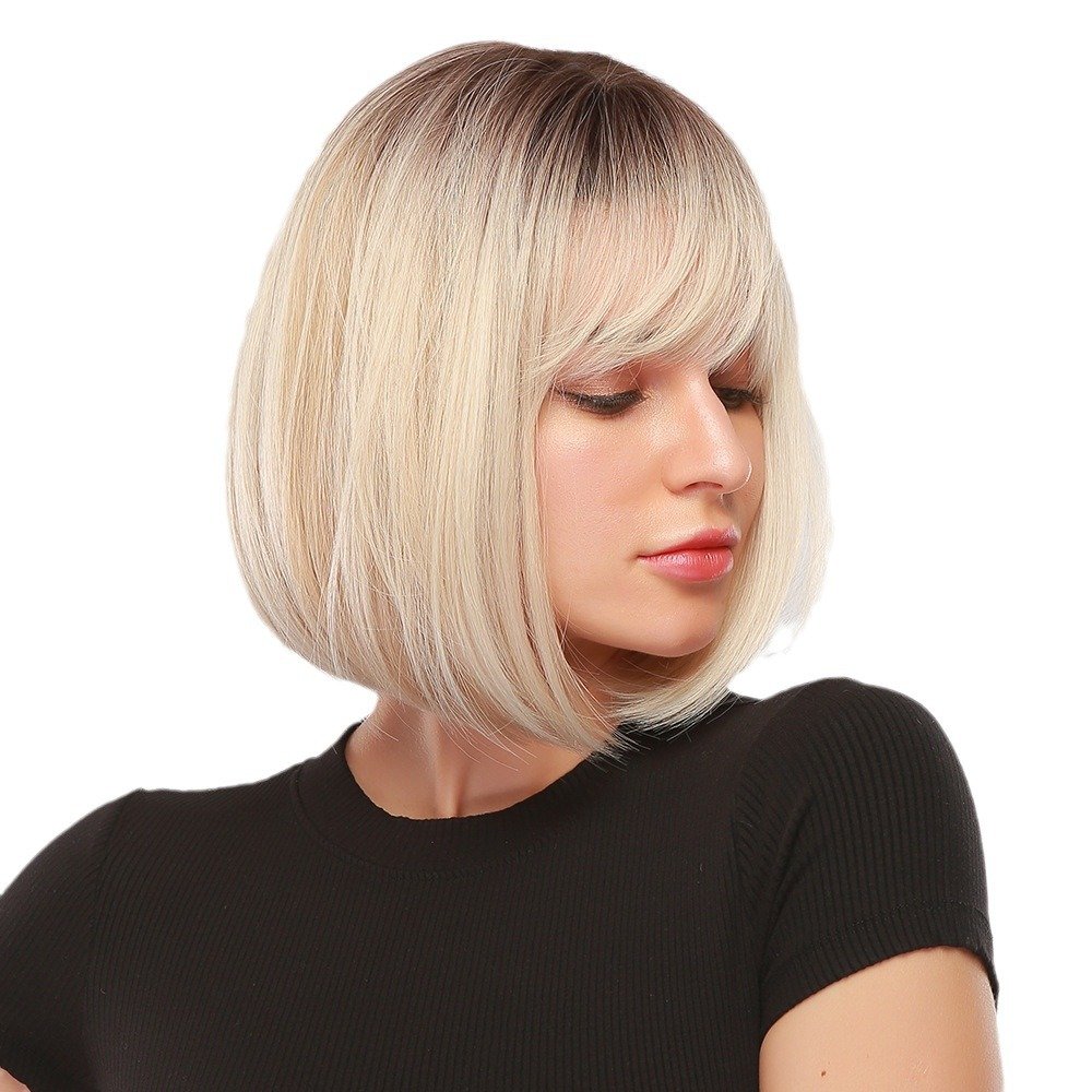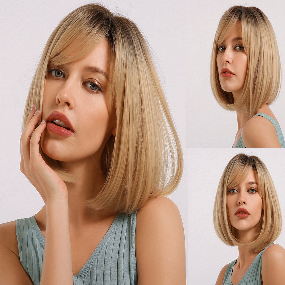 Female short straight brown mixed silk short hair fashionable synthetic headband