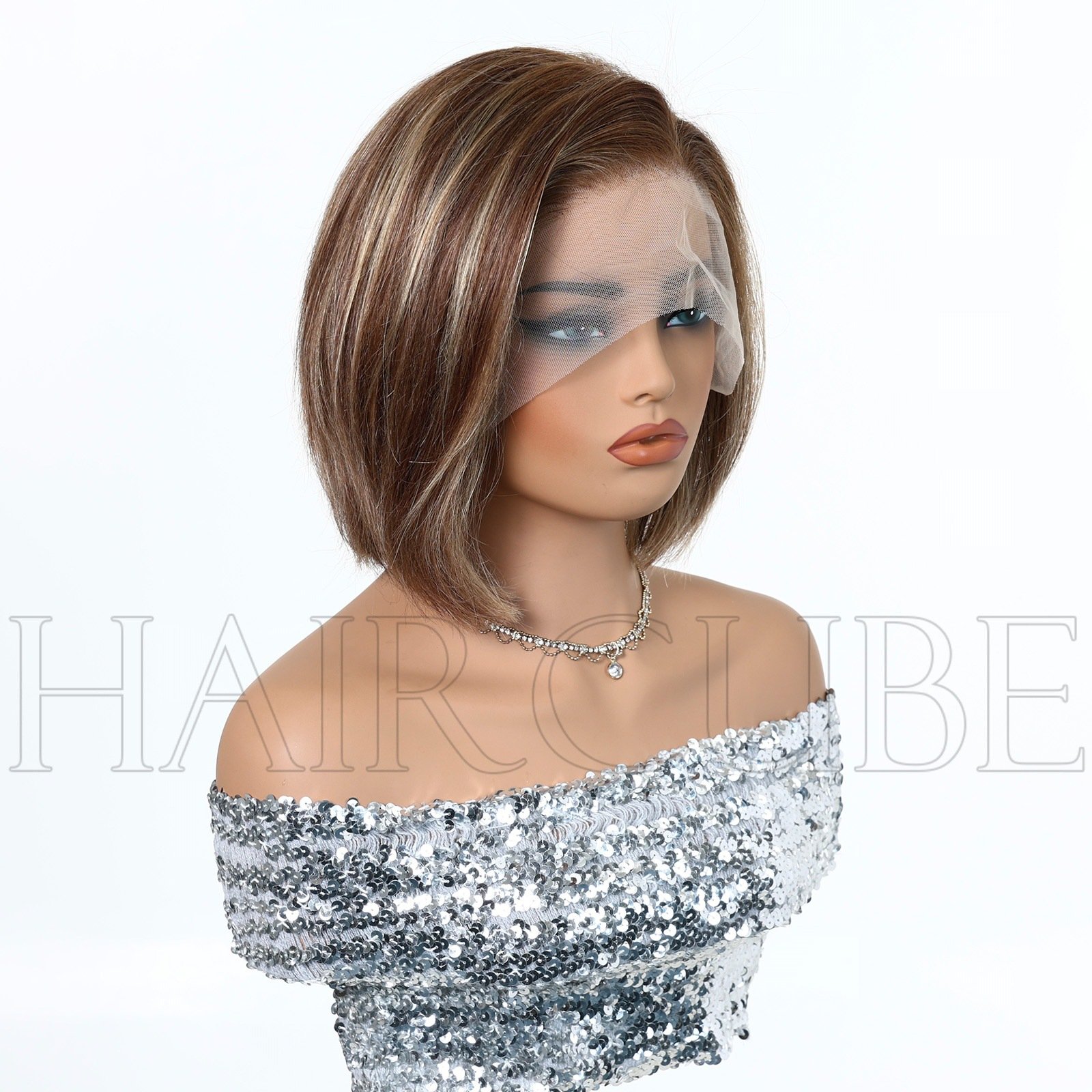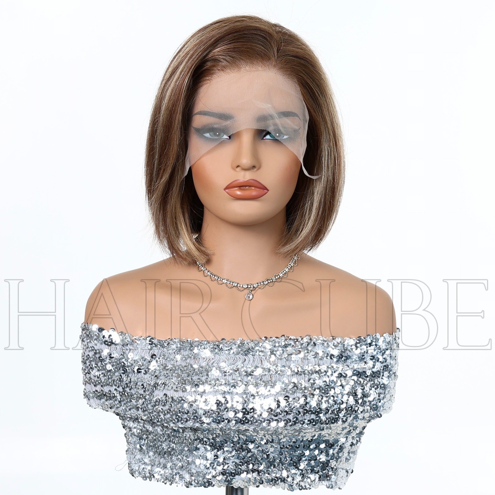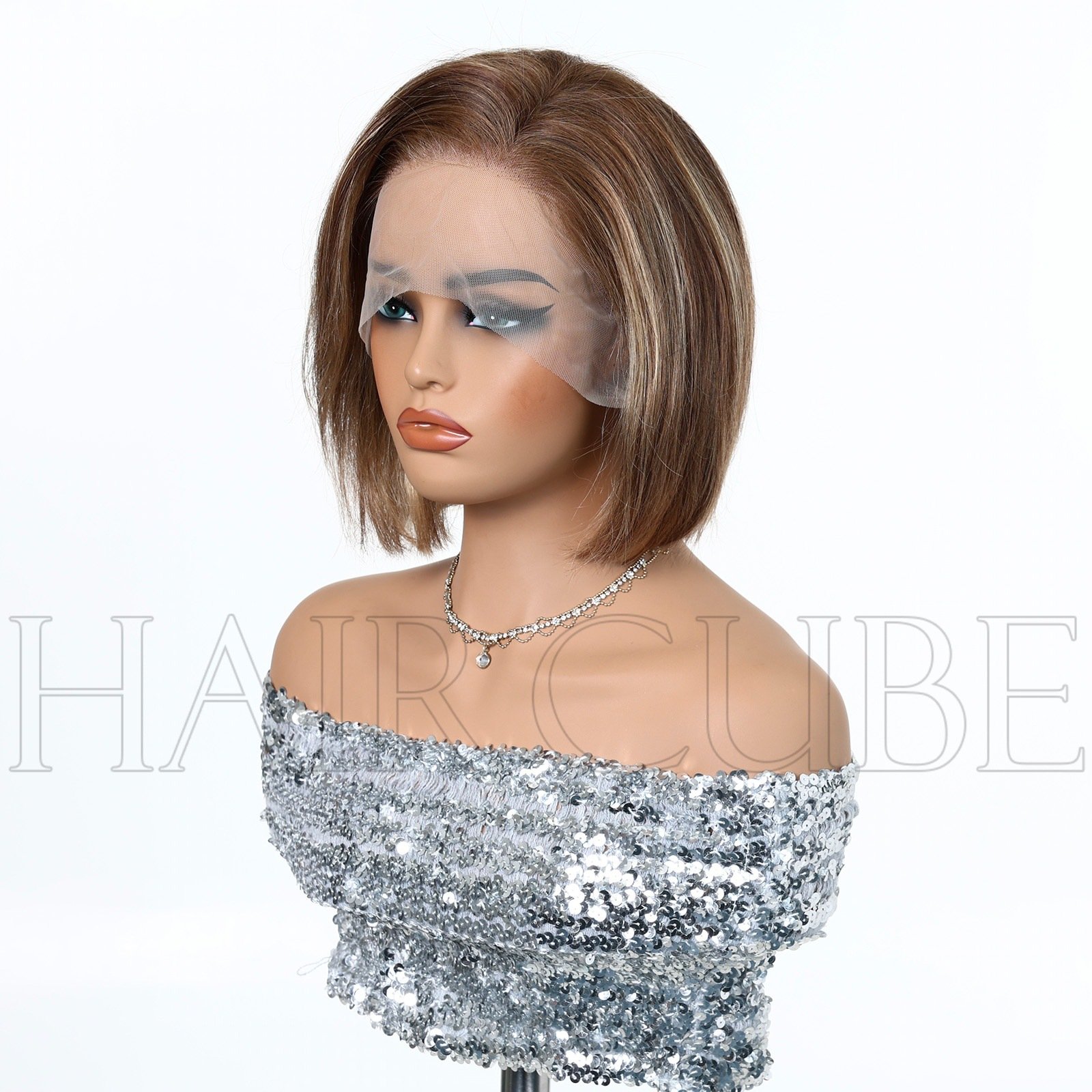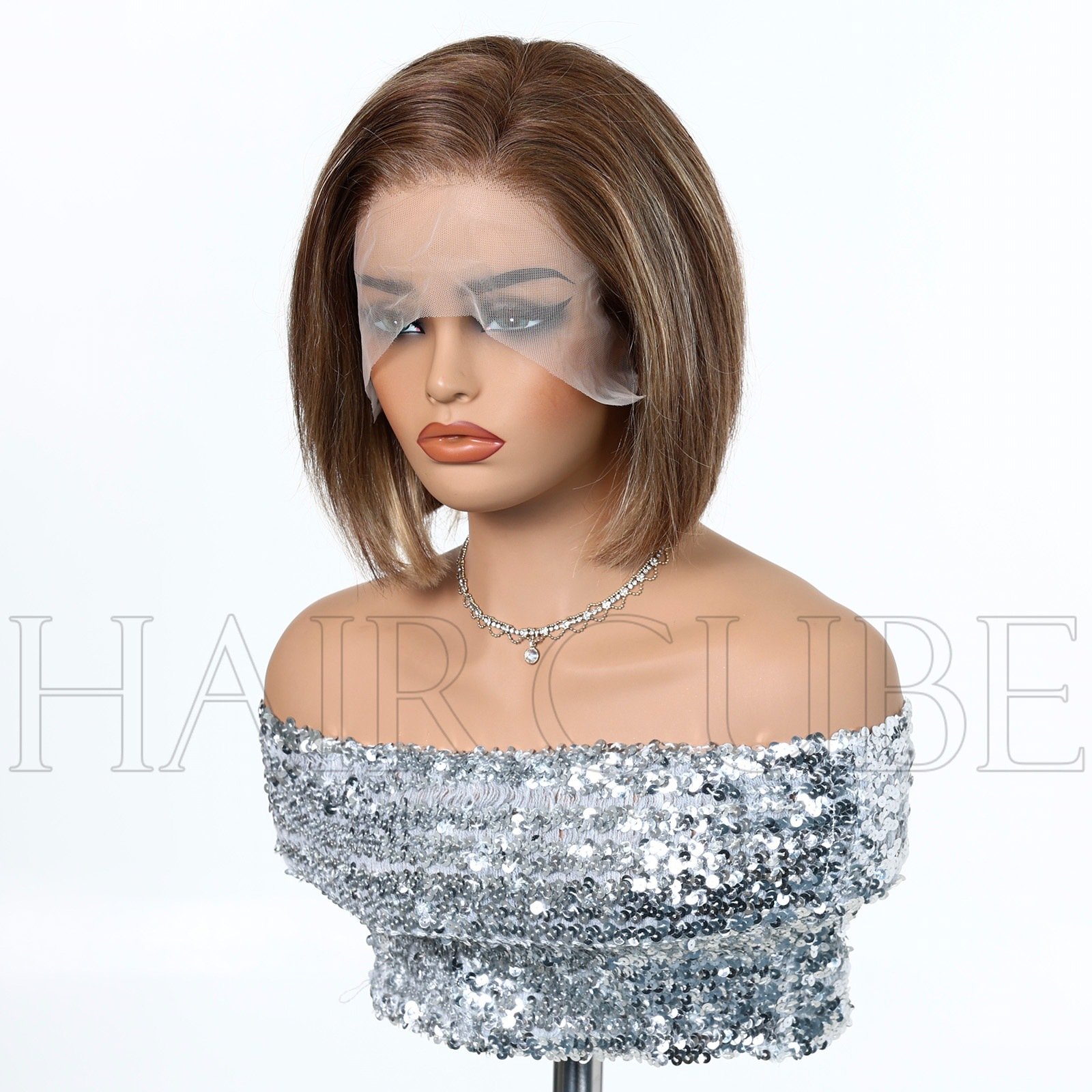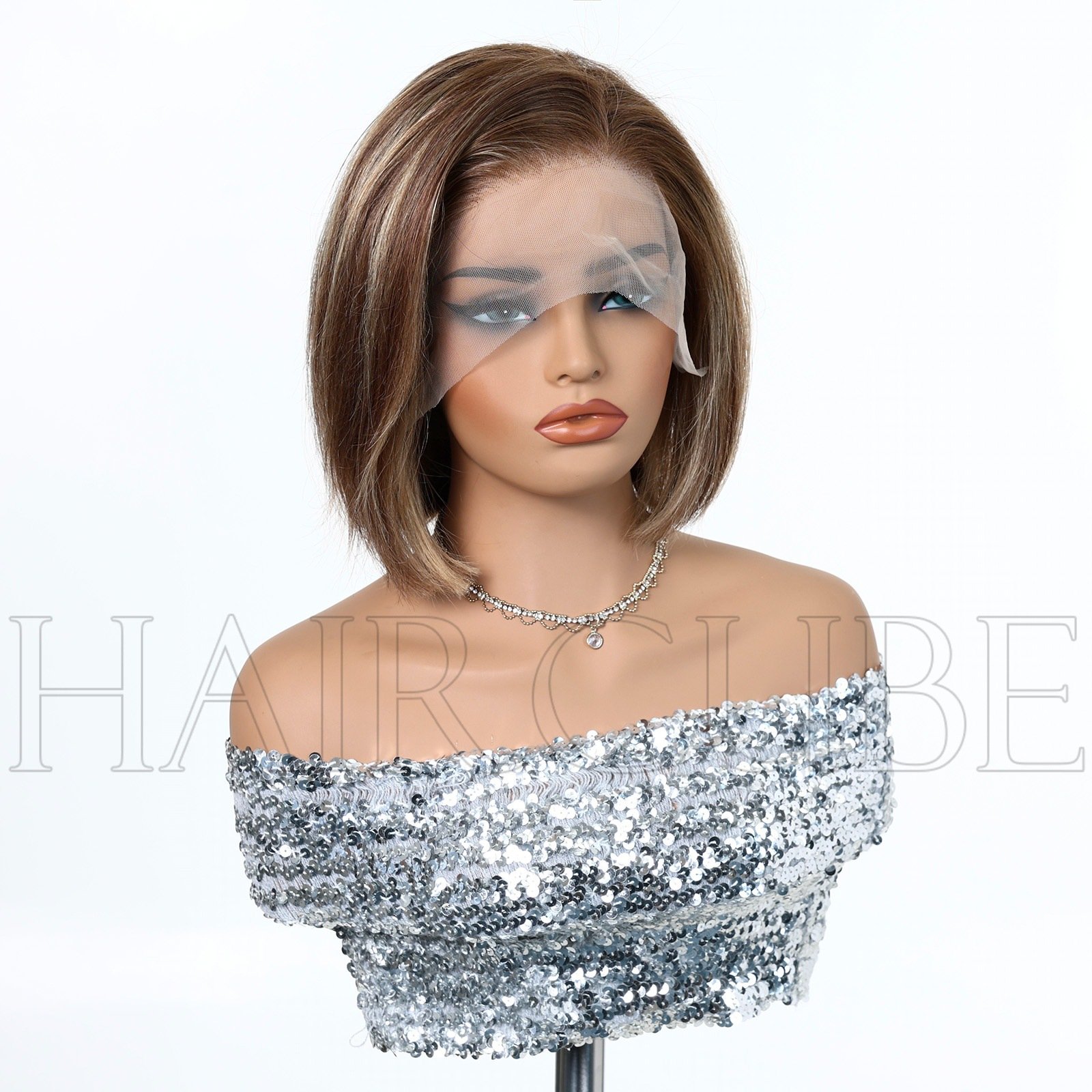 Real-life Hair Wig Headgear Lace Hand-woven 10inch Short Bobo Head Short Straight Hair Women’s Breathable Multi-color