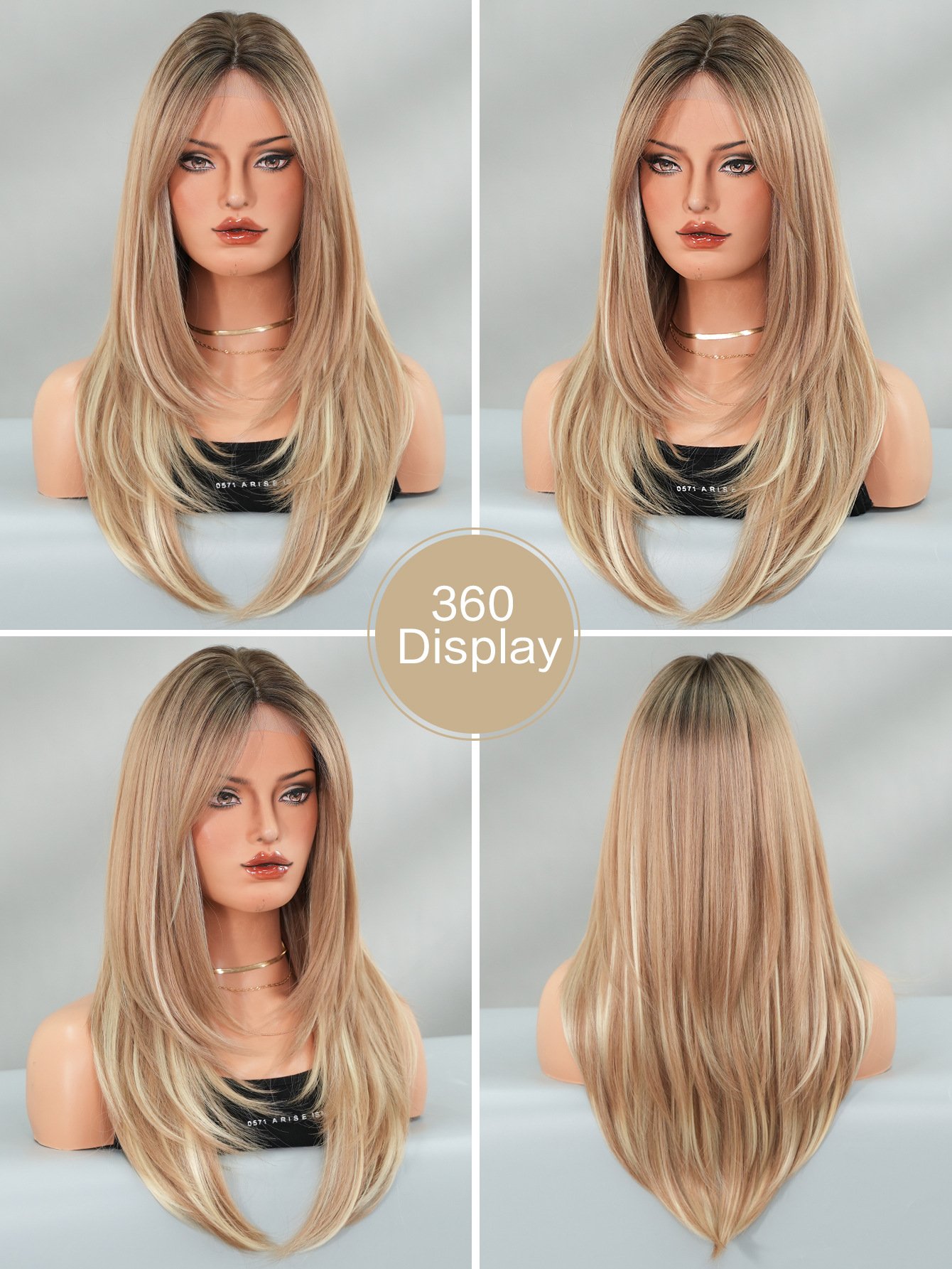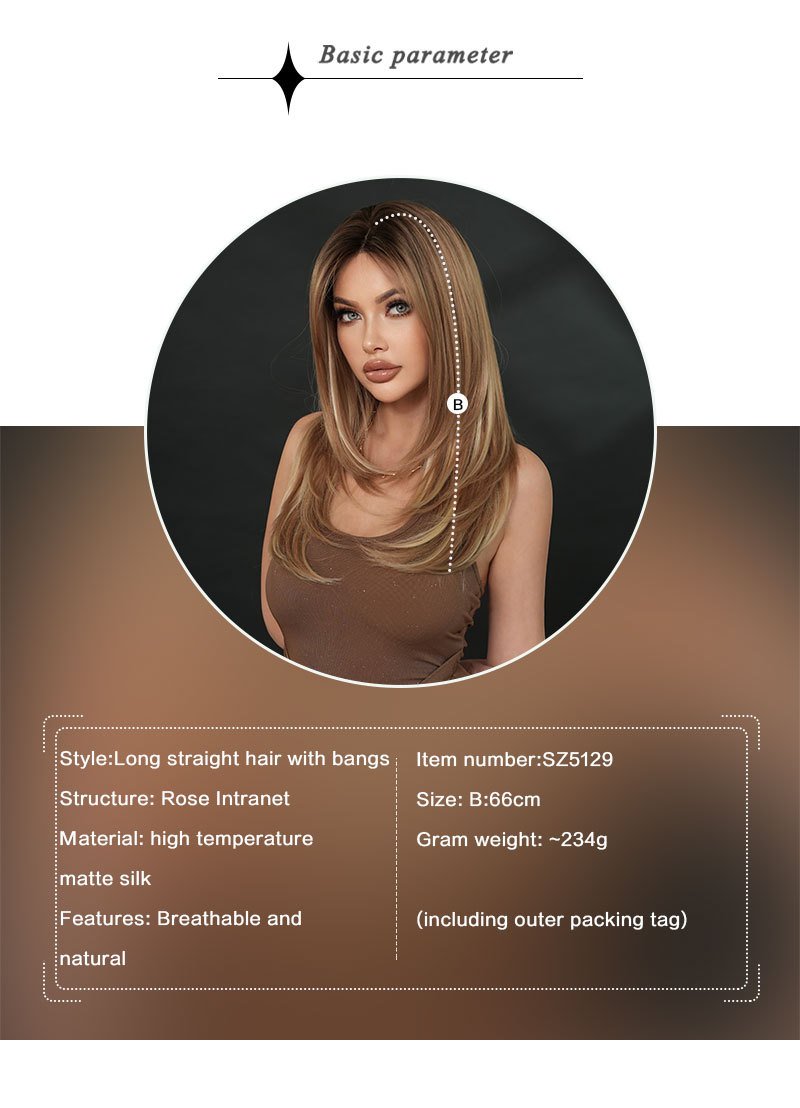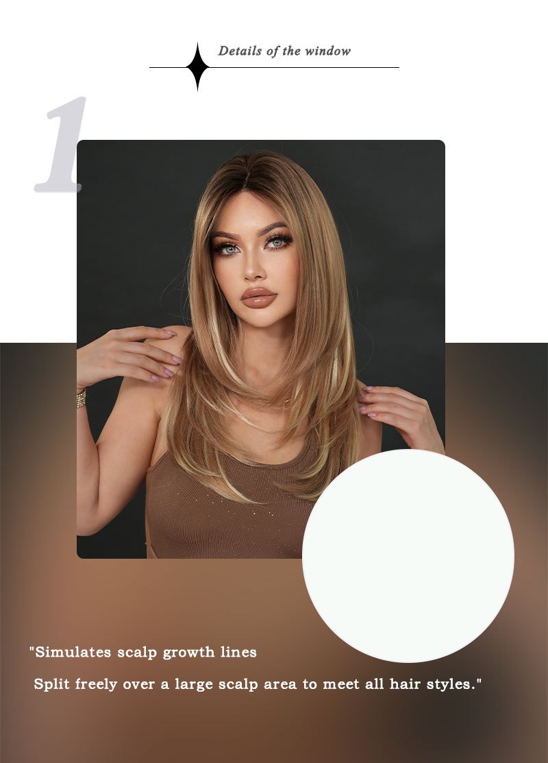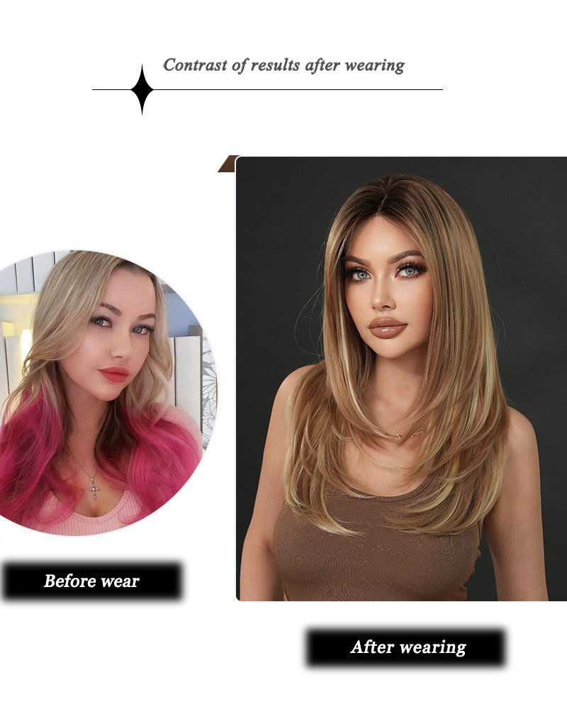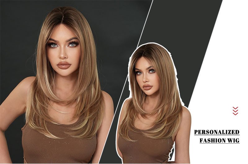 Wig Women's Gradient Golden Brown Long Curly Mid-point Fashion Wig Ombre Blonde Wigs