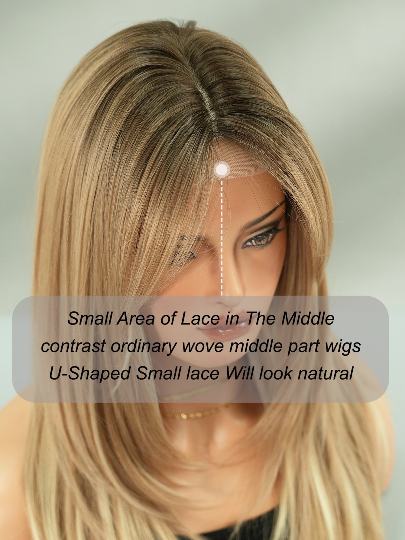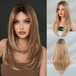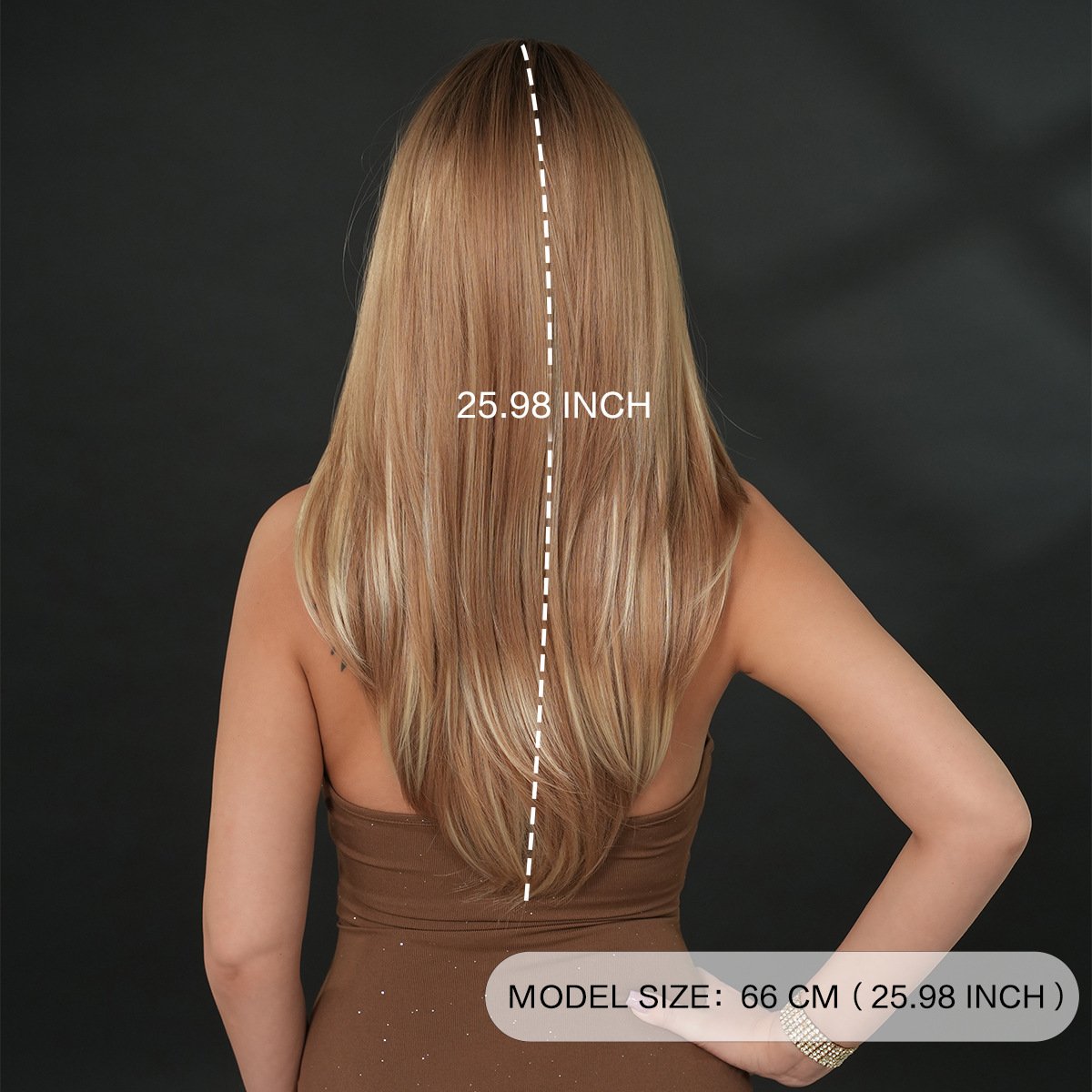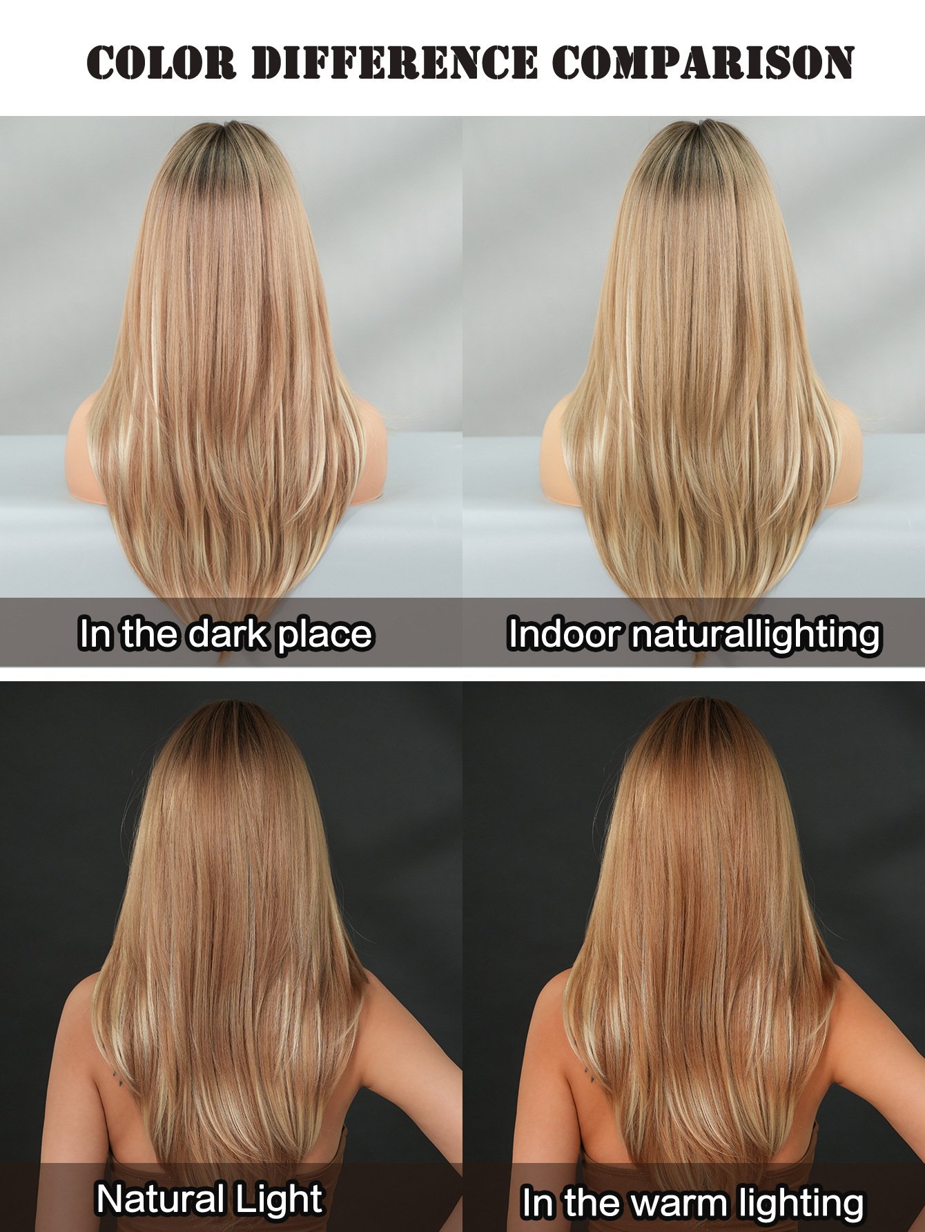 Wig Women's Gradient Golden Brown Long Curly Mid-point Fashion Wig Ombre Blonde Wigs