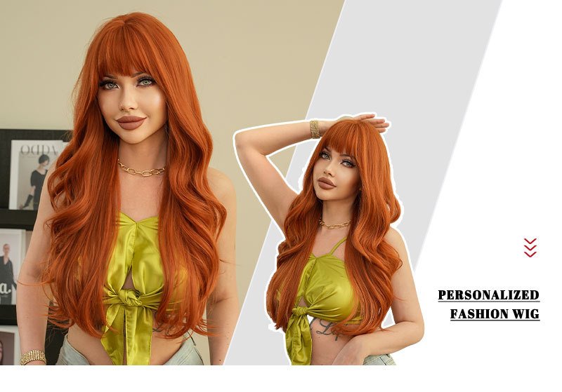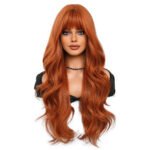 Classic Caramel Brown Long Wavy Wig – Trendy Large Wave Synthetic Hair