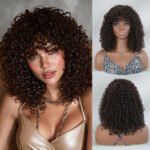 Elegant Brown Curly Wig – High-End Synthetic Fiber Headpiece