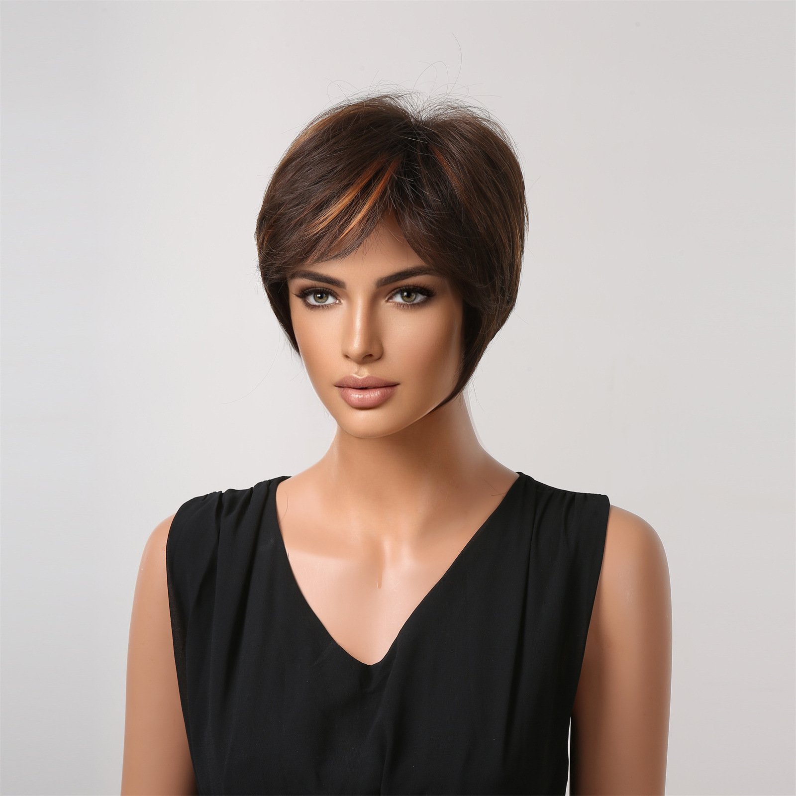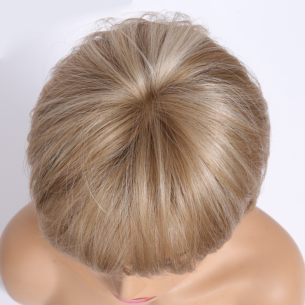 Wig Middle-aged Lady Gradually Brown Short Straight Rose Net
