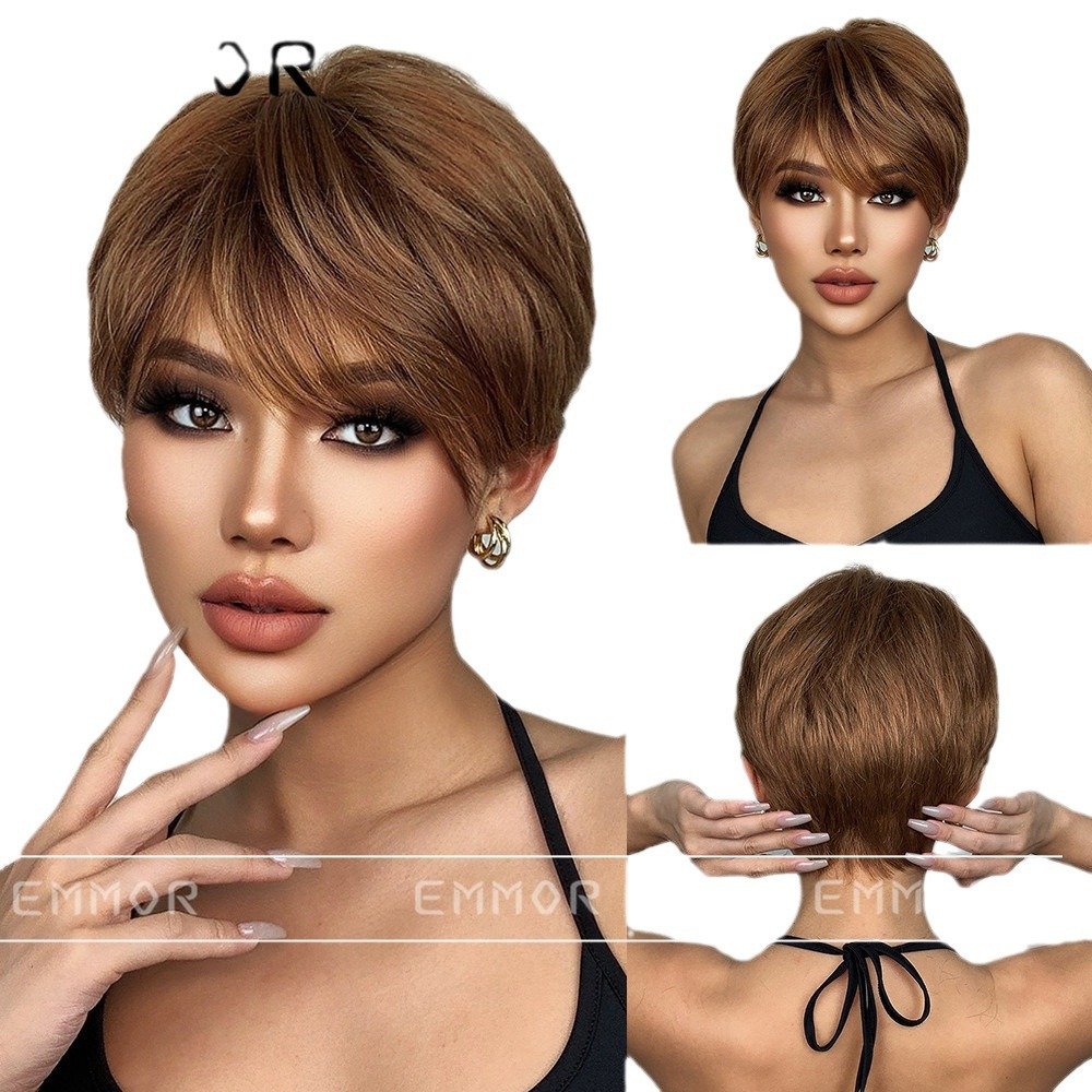Wig Explosions Women’s Fashion Wish Slant Bangs Fluffy Color Pick Short Curls
