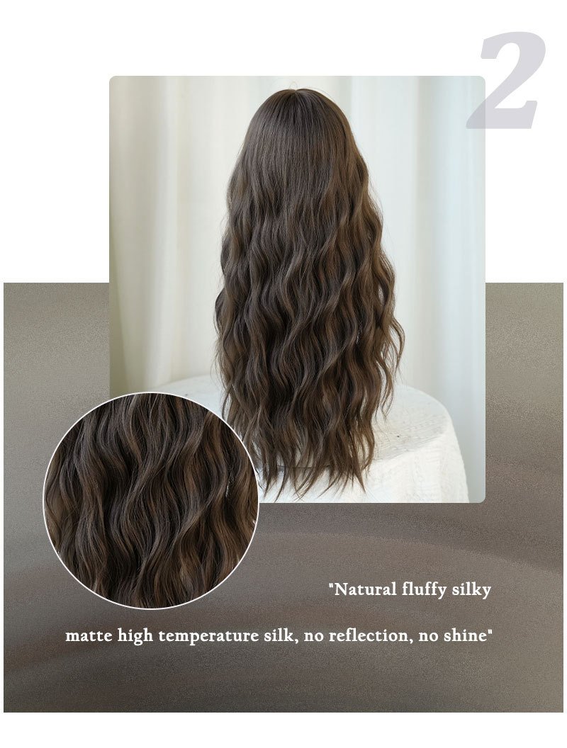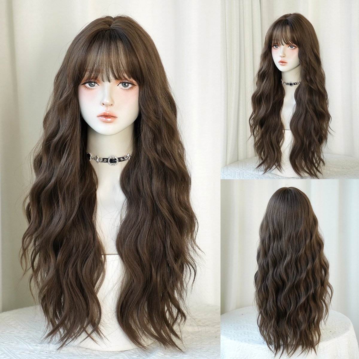 Warm Brown Daily Wig No Mark Full Head Cover Women's Round Face Long Hair Large Wavy Curly Hair Natural Full Top Simulation Hair